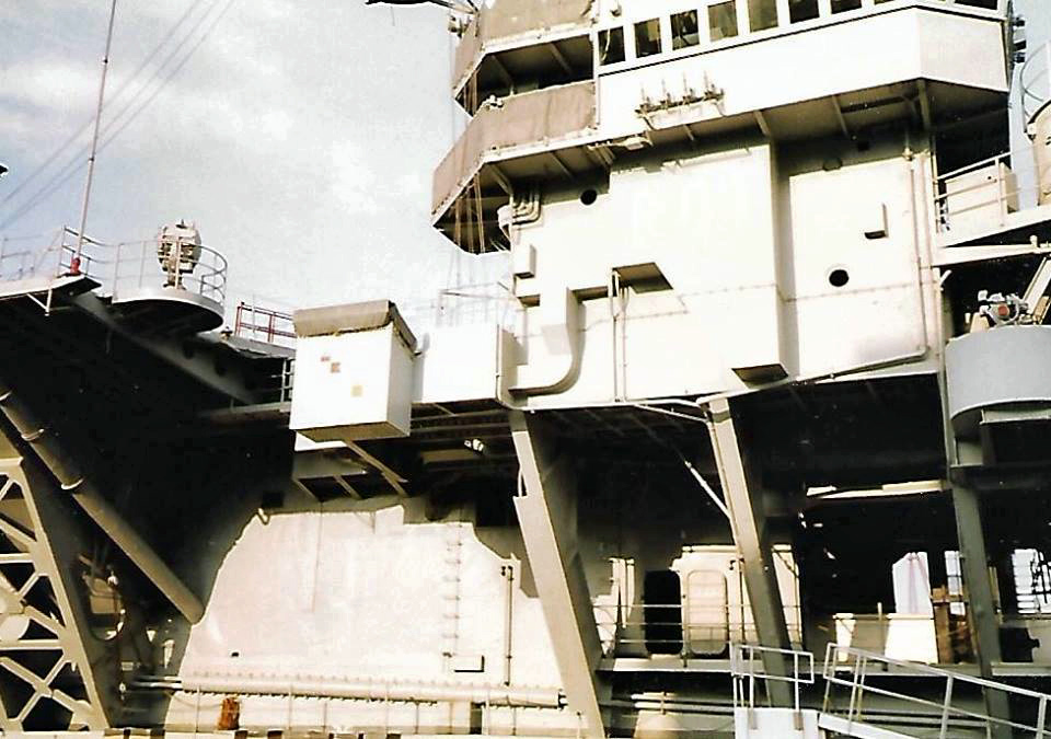 1.17M | The bridge and a portion of the flight deck of Cabot ("The Iron Woman")/Dédalo reconstructed in the National Museum of Naval Aviation, Pensacola, Florida, 20 December 1992. Photo by Mr. Howard H. Skidmore, CAPT, USN (Ret.) |