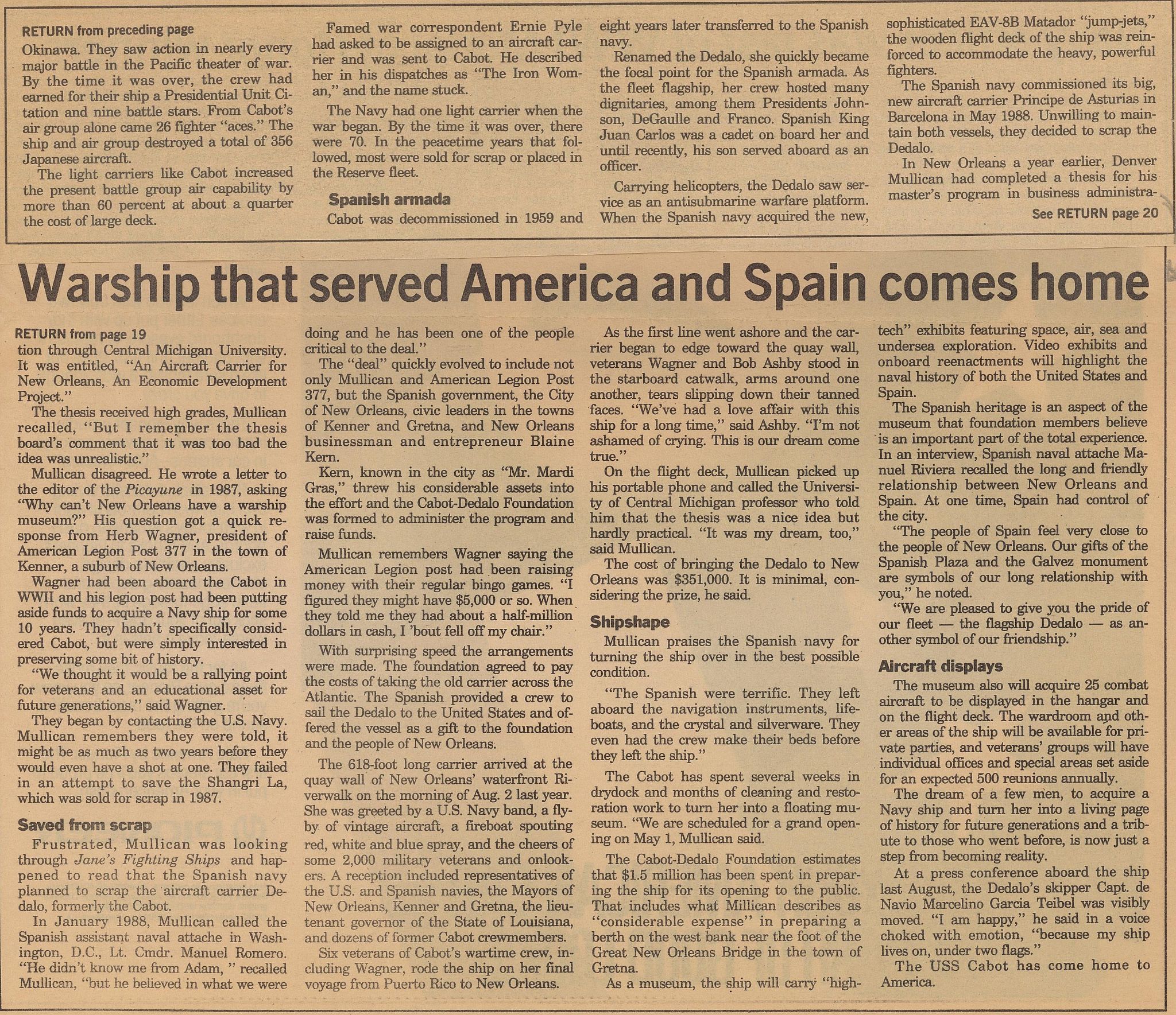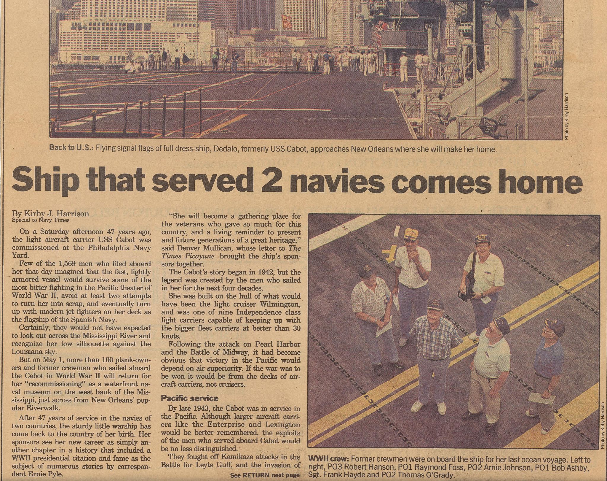 947k | "Ship that served 2 navies comes home" "Warship that served America and Spain comes home" Navy Times, 5 March 1990. |