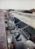 52k | New Orleans Seen here docked in New Orleans LA, At the time she was waiting to be preserved as a memorial after her return from Spain. That effort failed and she was towed to Brownsville TX. in January 1998 to be broken up. A Judge for the Federal district of south Texas halted the scrapping and the matter is still pending. (NOTE) Cabot is the only remaining member of her class, and essentially unaltered from her W.W.II appearance. (see Fate). |