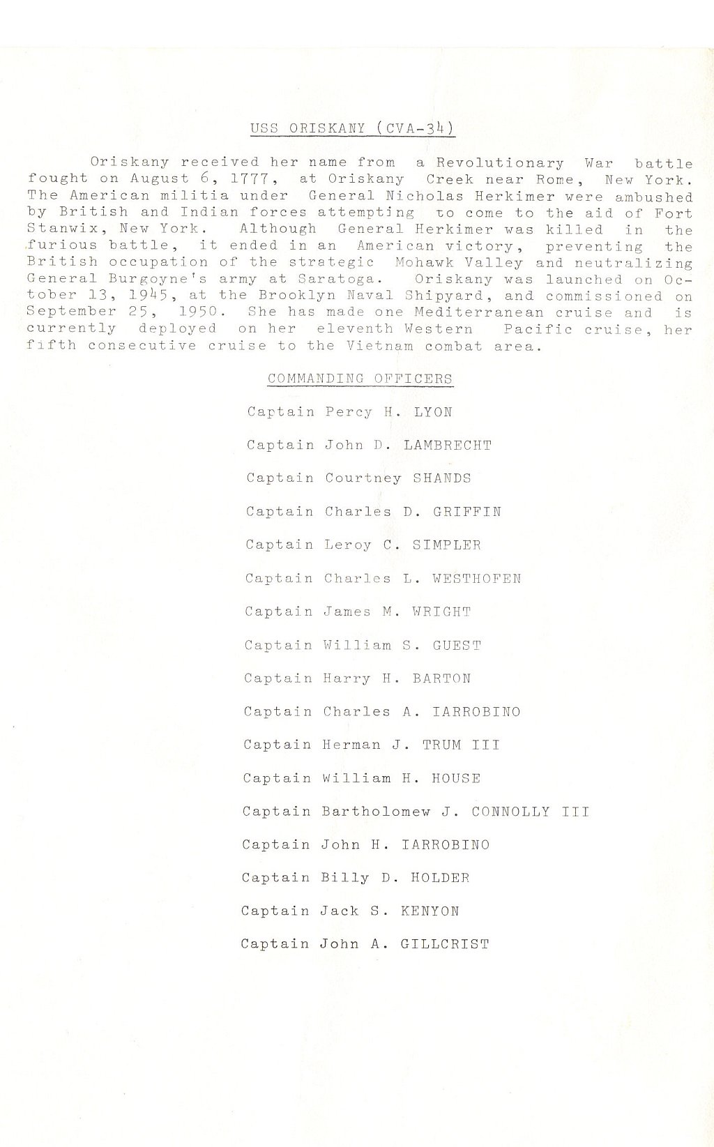 USS Oriskany (CV-34 / CVA-34 / CV-34) Main Page |