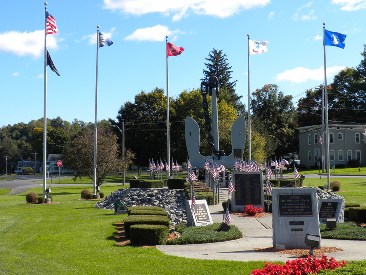 186k | Trinkaus Park, Oriskany, NY. The starboard anchor and piece of chain were brought to Oriskany NY in 1991 and placed on a pedestal built by local citizens and construction companies. |
