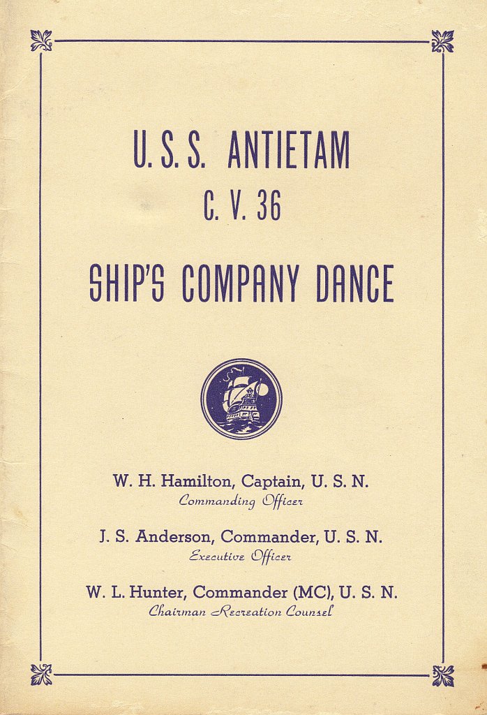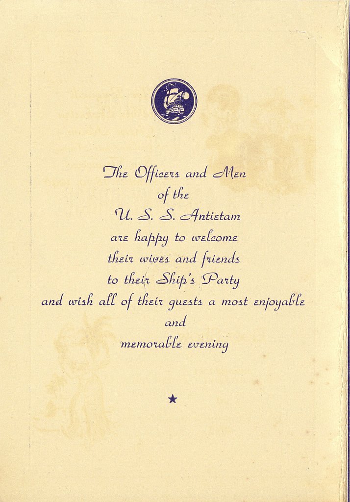 160k | Card that was passed out to visitors aboard USS Antietam (CV-36) on Navy Day, 27 October 1947. |