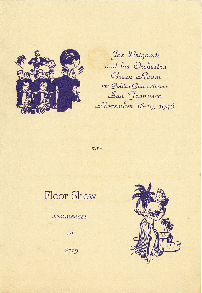 141k | Program for the Ship's Company Dance, held on 18 & 19 November 1946, at the Green Room 150 Golden Gate Avenue, San Francisco, CA. |
