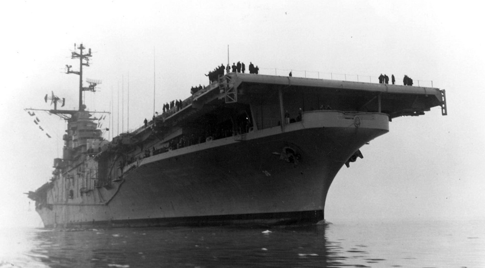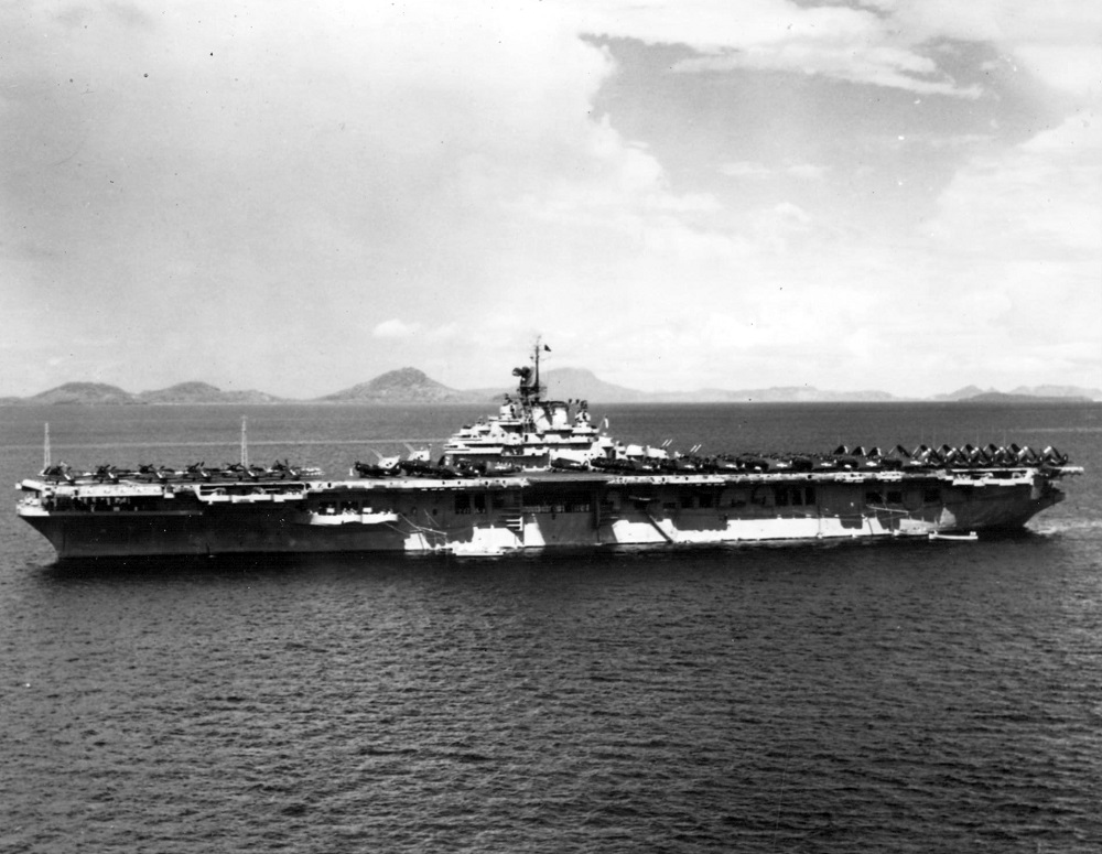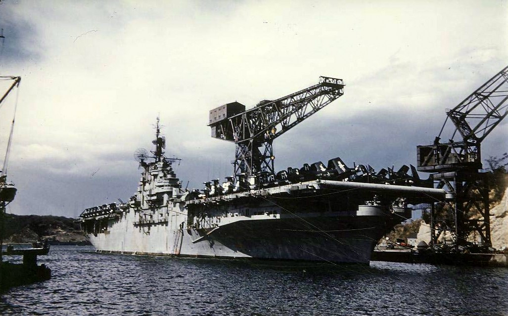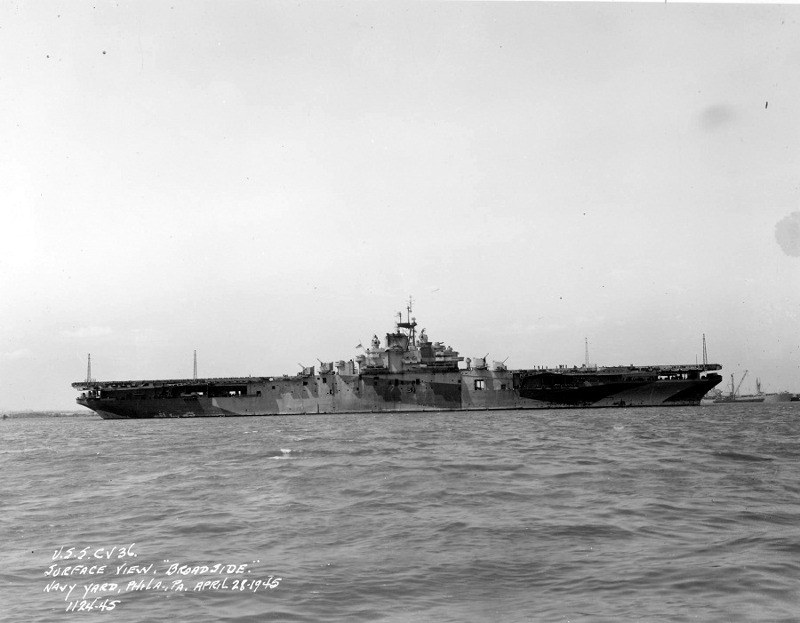31k | USS Antietam (CV-36) anchored off Norfolk, VA, mid-July 1945. Source: Kitsap County Library System. |