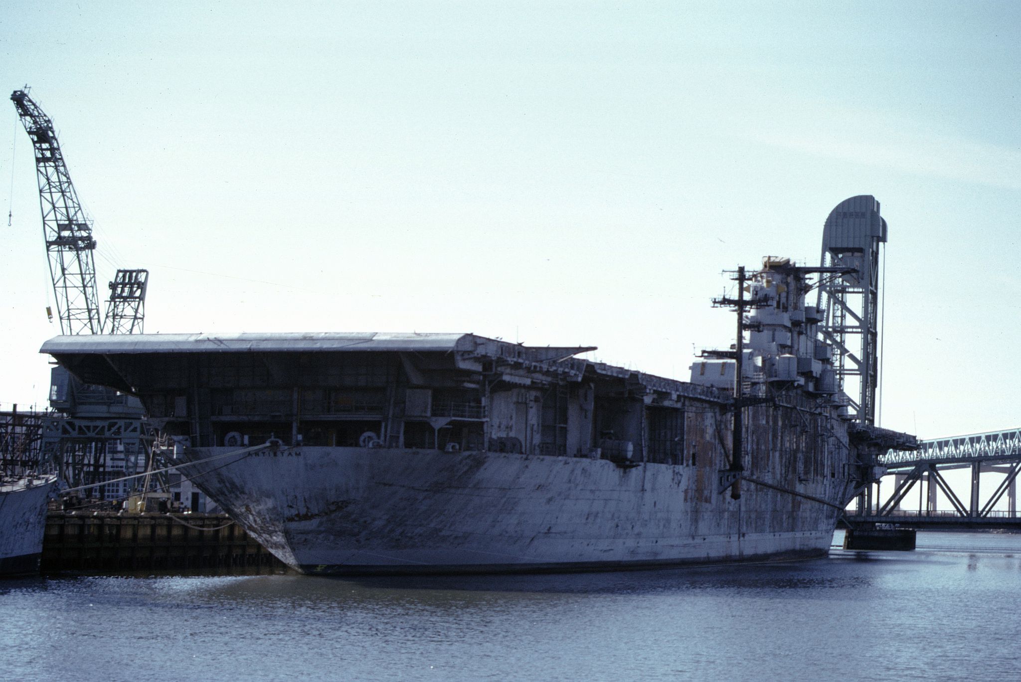 327k | Ex-USS Antietam (CVS-36) at the Philadelphia Navy Yard, December 1973. |