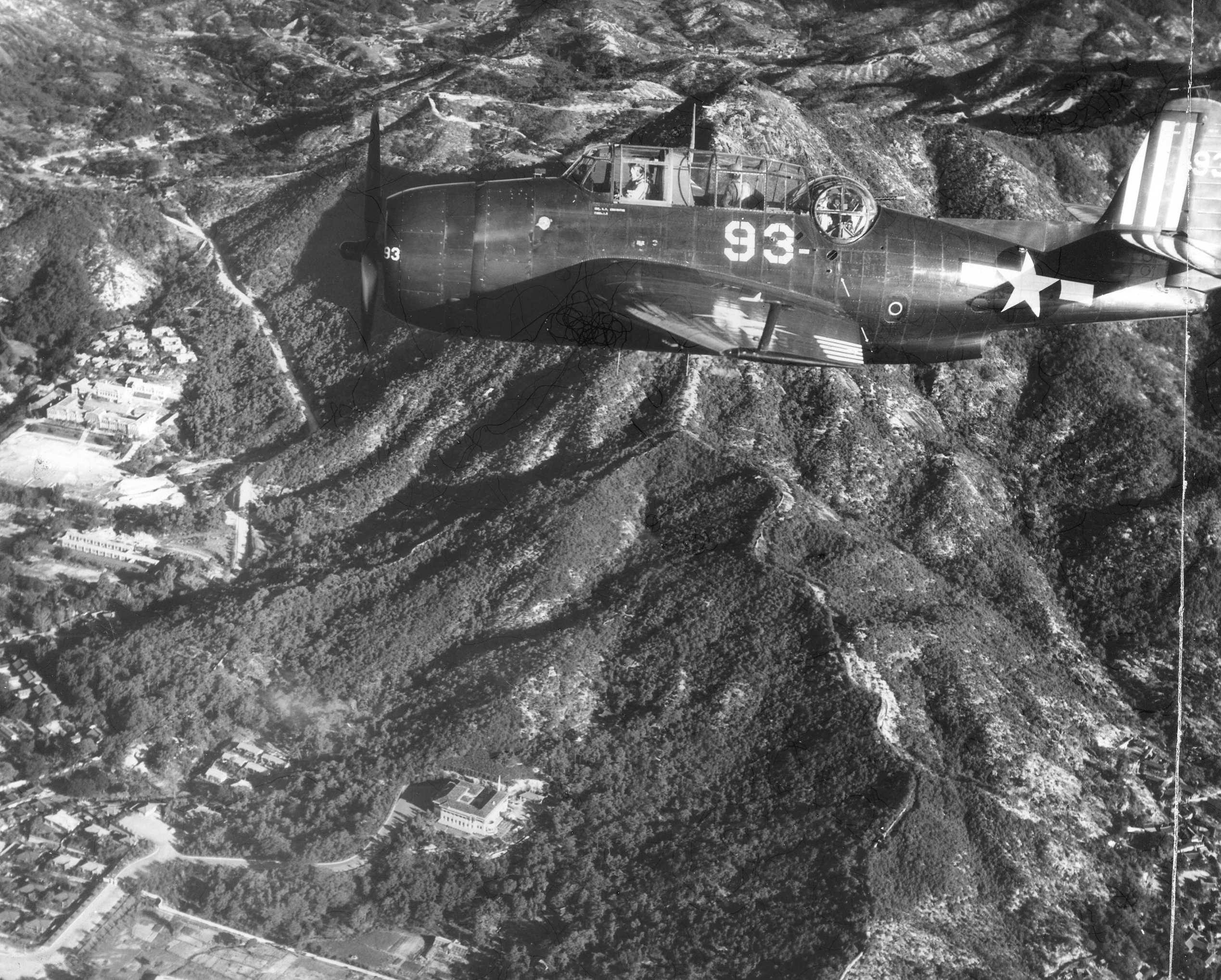 440k | A TBM-3E Avenger from Torpedo Squadron (VT) 89, off USS Antietam (CV-36), flagship of Task Force (TF) 72, flying over northern China in support of U.S. occupation force, 9 September 1945. |
