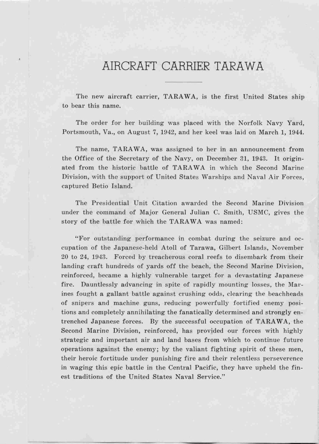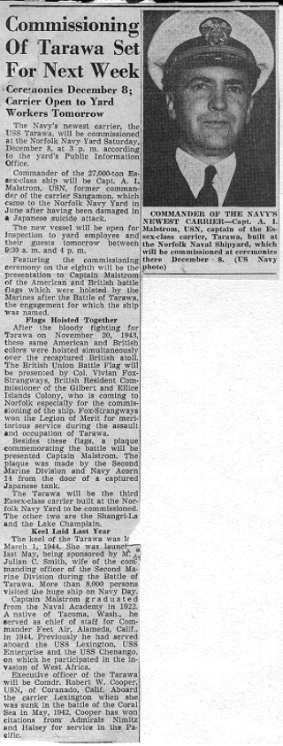 | Newspaper Article About the Commissioning of USS Tarawa |