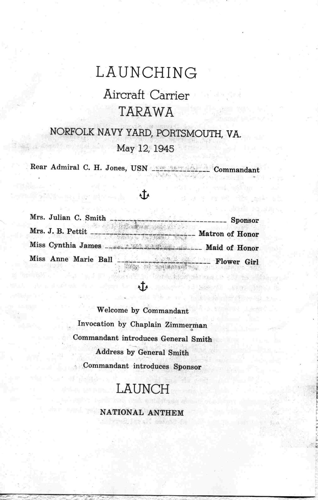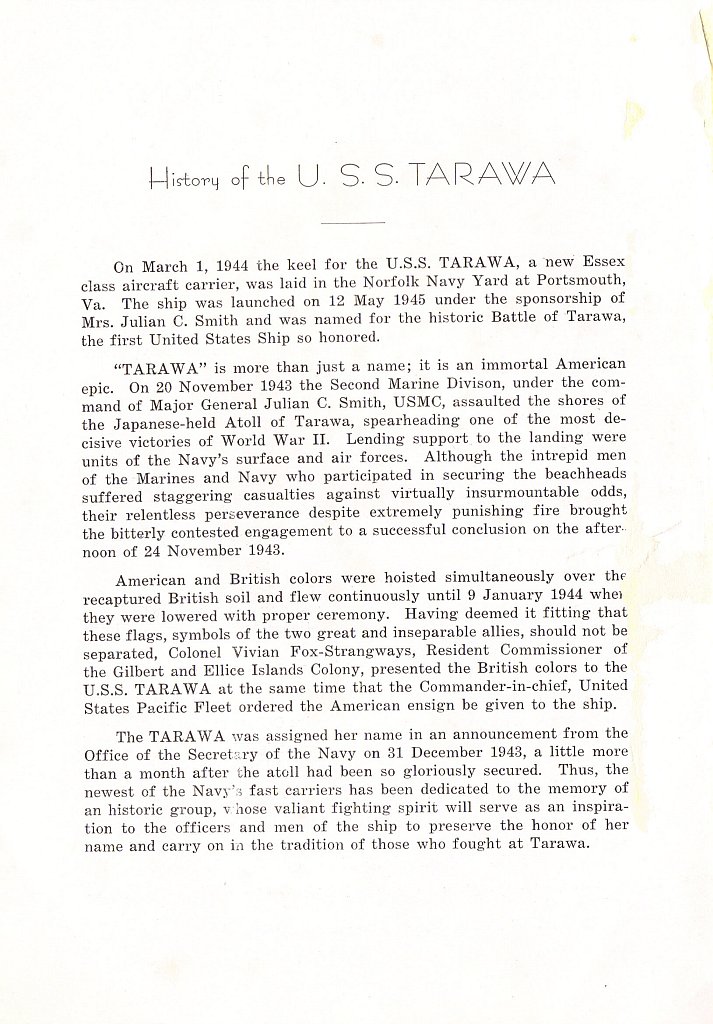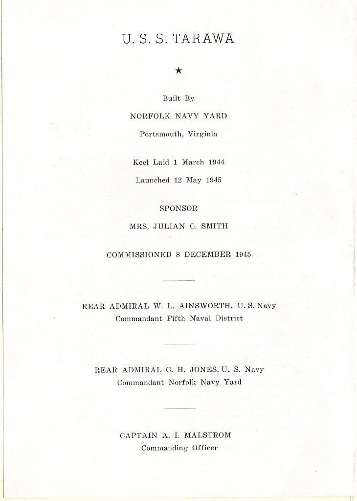 | Commissioning of USS Tarawa, 8 December 1945 |