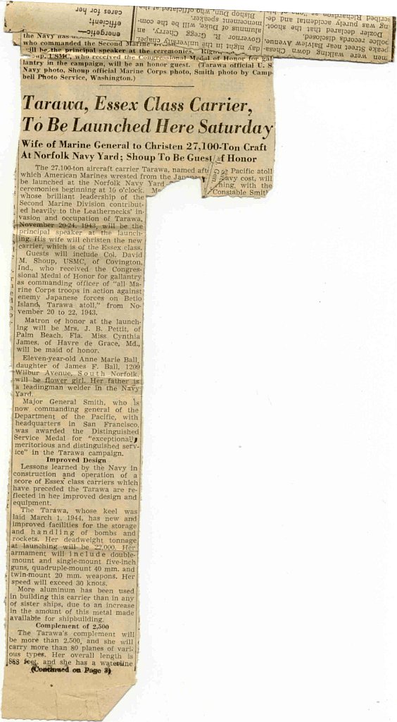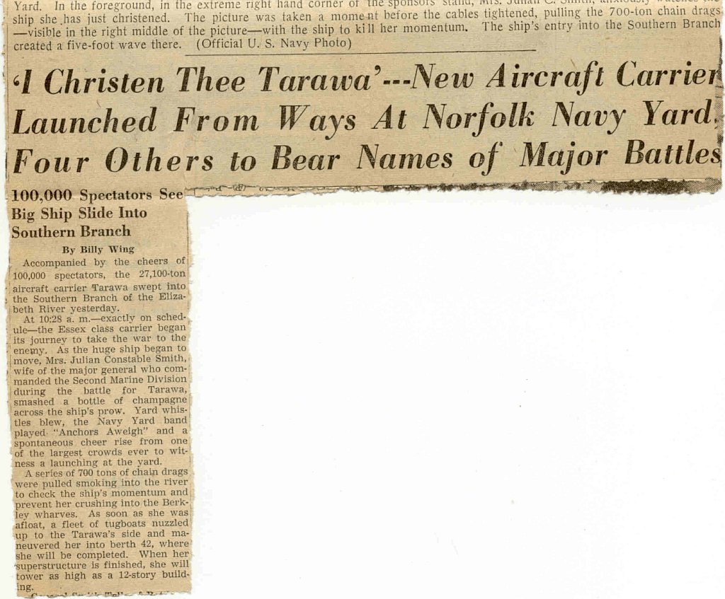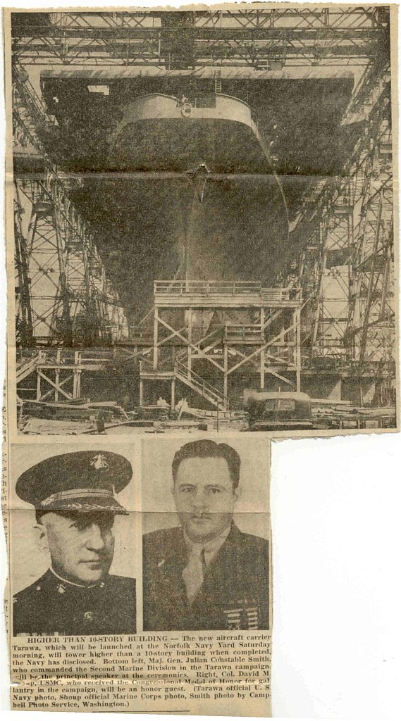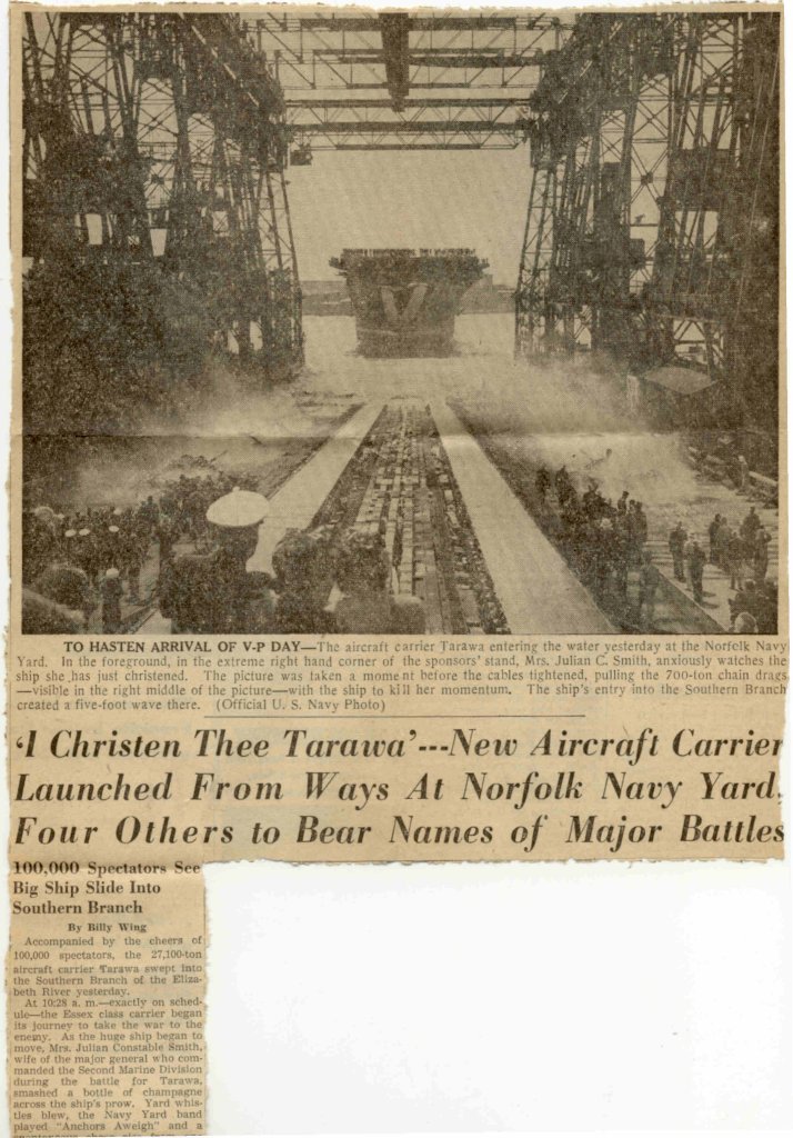 | Local Newspaper Articles About the Launching of USS Tarawa |