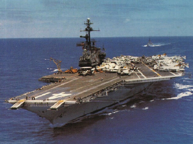 211k | USS Midway (CV-41) steaming alongside USS Kitty Hawk (CV-63), possibly in the North Arabian Sea on 16 April 1984. |