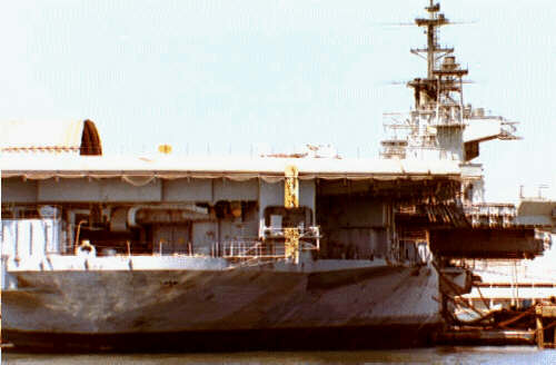 146k | Midway's island structure, starboard view; gangway. |