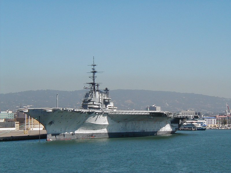 66k | Midway at Oakland, Calif., October 11, 2003. (See Fate). I took this photo while on board the Liberty ship Jeremiah O'Brien during the Fleet Week cruise. |