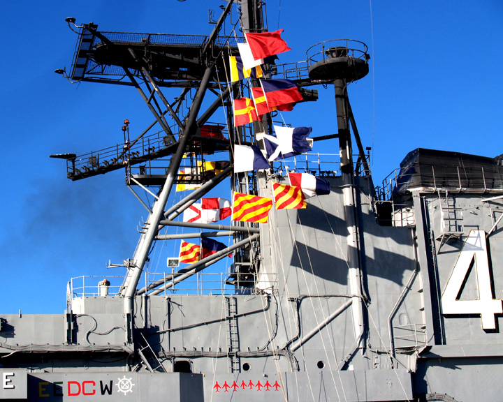 222k | Signal hoist reads: (stbd) GO NAVY BLUE (port) BEAT ARMY GRAY. November 2005. (By the way, Navy beat Army, 42-23, December 3, 2005 :-)) |