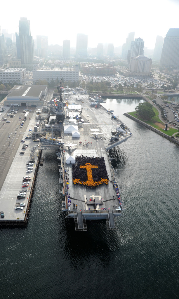 339k | Chief Petty Officers (CPO) and Chief Petty Officer selectees form an anchor on the flight deck of the USS Midway Museum in observance of CPO Pride Day, 1 September 2010. The day began at the museum and continued with community service activities throughout the San Diego Country area. CPO Pride Day was founded in 2003 by Force Master Chief Karen O'Connor. U.S. Navy photo by Mass Communication Specialist 1st Class Scott Taylor (# 100901-N-9500T-002). |