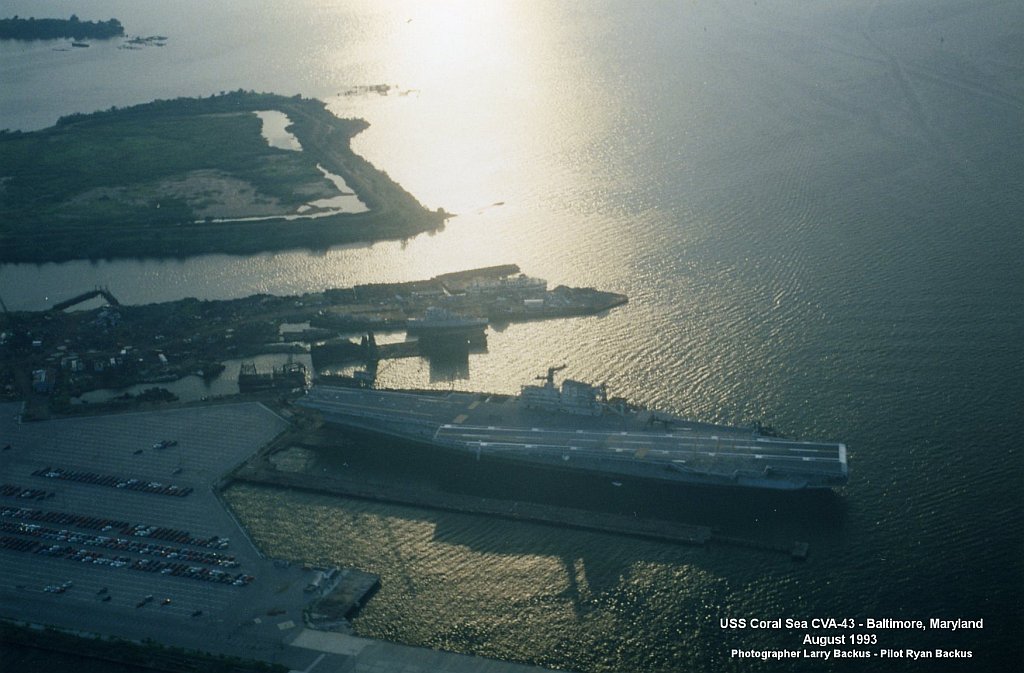 169k | "These photos were taken on a boat ride from Baltimore to Annapolis, MD back in 1994. We were on our way out of Baltimore when I took these shots. As well an unknown destroyer[—either ex-Davis (DD-937) or ex-Manley (DD-940)—]next to the carrier." Photos by Cody Z. Shaffer. |