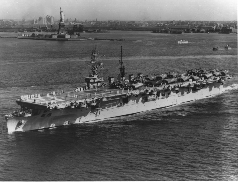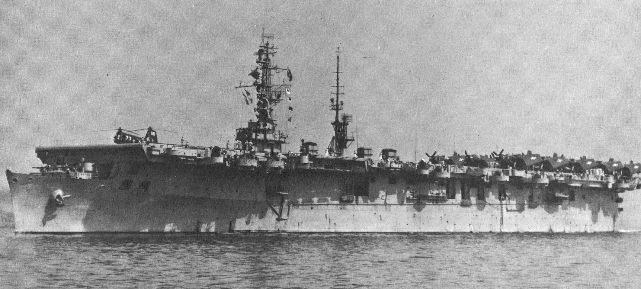 87k | USS Wright (CVL-49) photographed on 1 May 1947. Official U.S. Navy Photograph, now in the collections of the National Archives (# 80-G-195684). |