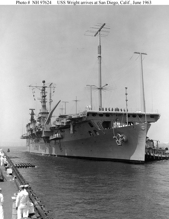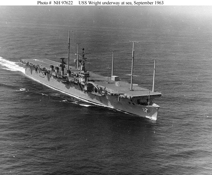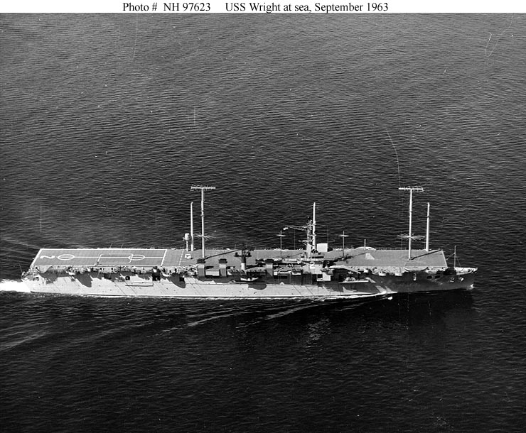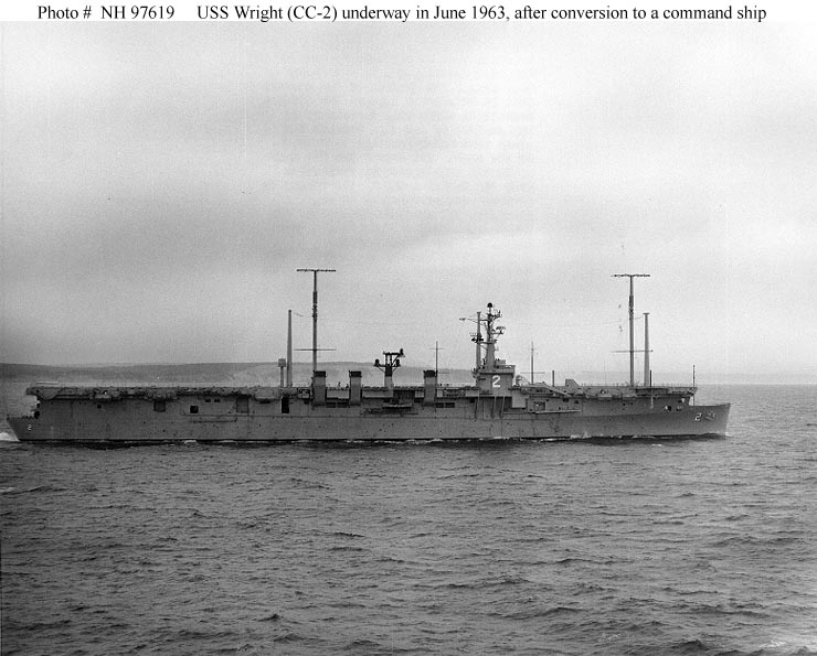 114k | USS Wright (CC-2) underway, 17 June 1963, after conversion to a command ship. Official U.S. Navy photograph, from the collections of the Naval History and Heritage Command, # NH 97620. |