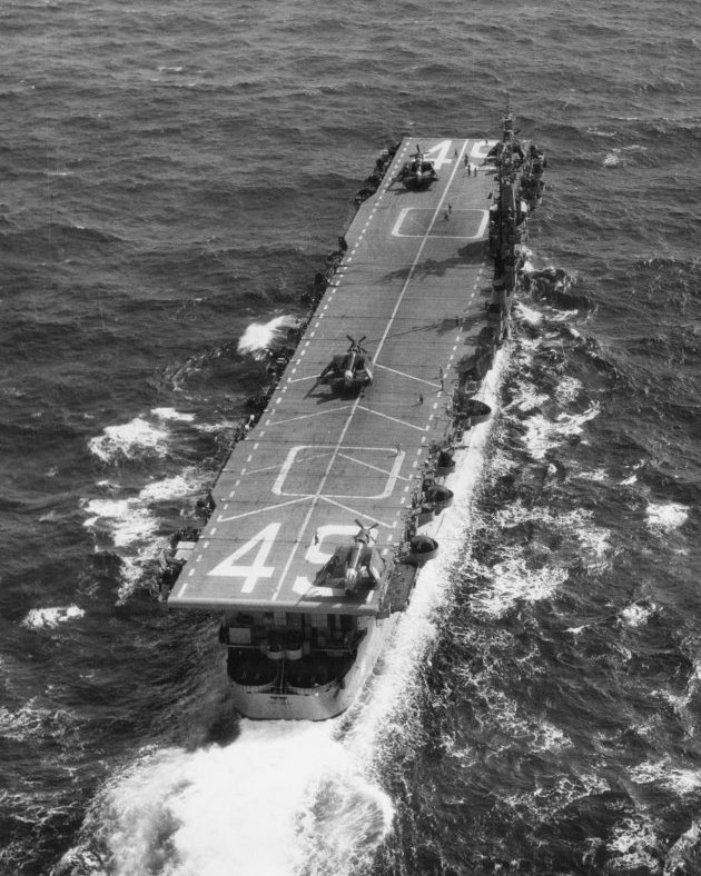 27k | USS Guadalcanal (LPH-7) off bow. The photo was taken 8 May 1968, about 180 miles south of Norfolk. Scanned from the ship's magazine. | Karl Priest | |