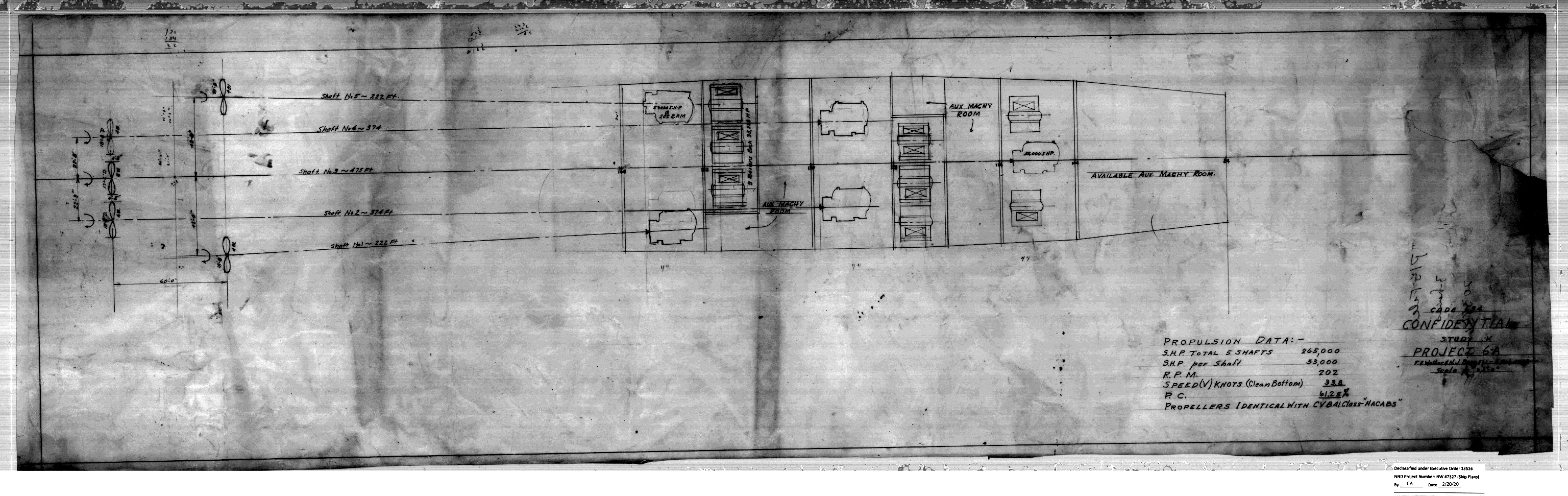 1.74M | Plans for the aircraft carrier USS United States (CVA-58), 1947. Architectural and Engineering Drawings. National Archives and Records Administration (NARA), Record Group 19. NS025805: Sheet 1. ARC Identifier: 167818897. NS025805a: Sheet 2. ARC Identifier: 167818899. NS025805b: Preliminary Design Drawings, July, 18 September, 2 October, 10 October, 15 December 1947. |
