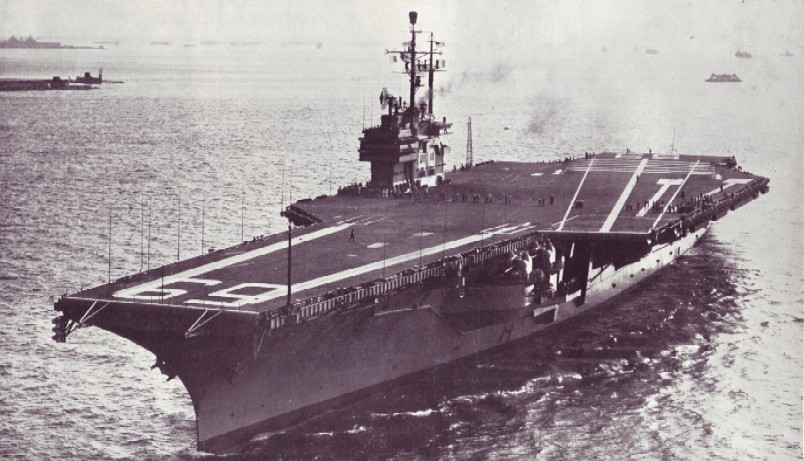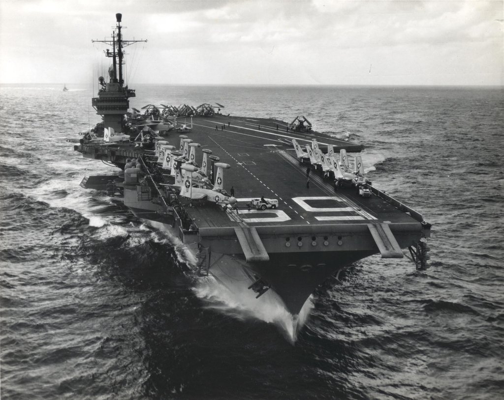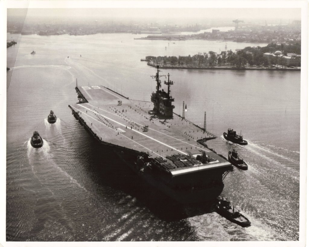 137k | Forrestal (CVA-59) underway, 29 September 1955, from Newport News Shipbuilding and Dry Dock Company to Norfolk Naval Shipyard, just prior to commissioning and acceptance by U.S. Navy on October 1, 1955. Official photograph, U.S. Navy |