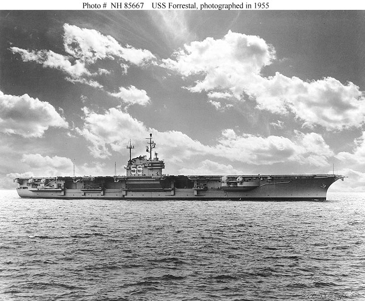 118k | USS Forrestal (CVA-59) photographed by W.F. Radcliff, 1955. U.S. Naval Historical Center Photograph. (photo # NH 85667). |