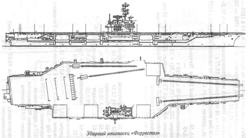 111k | Official U.S. Navy photo of Forrestal (CVA-59) from "Jane's Fighting Ships, 1956–1957," possibly taken when she was about to begin her builder's trials. |