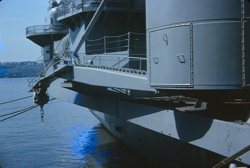 1.42M | "A MILLION DOLLAR ALTERATION PLANNED FOR THE NEWLY-LAUNCHED WORLD'S LARGEST WARSHIP: A CLOSE-UP OF SUPERSTRUCTURE OF U.S.S. FORRESTAL, WHICH IS TO BE MOVED 22 FT. OUTWARDS TO THE DOTTED LINE." The Illustrated London News, 1 January 1955. |