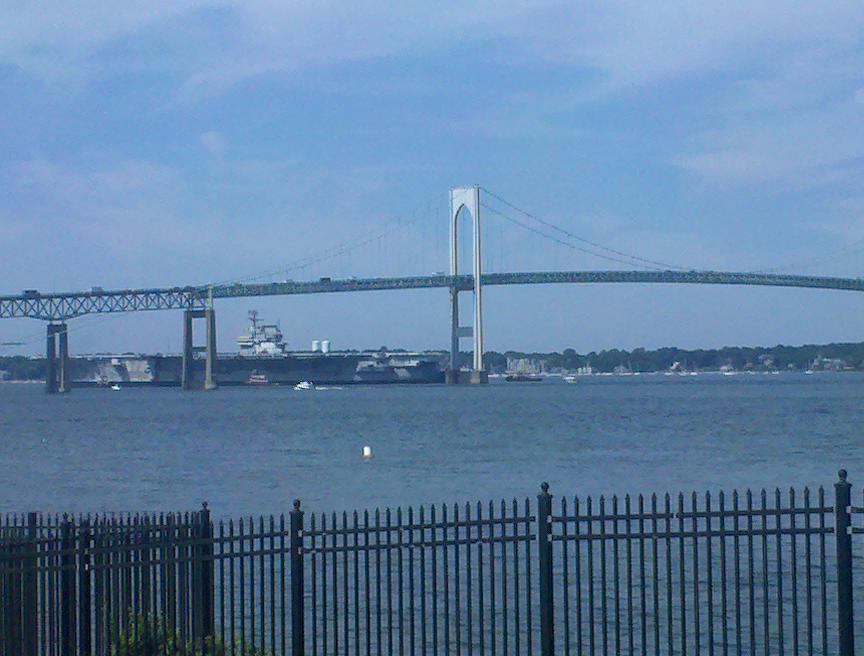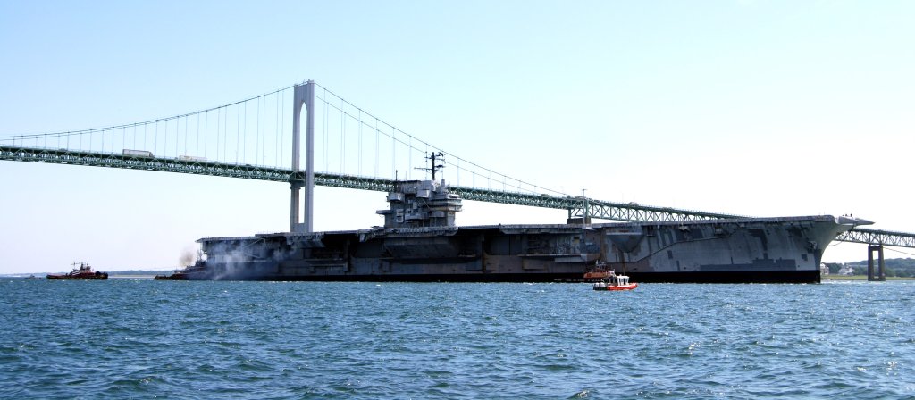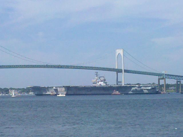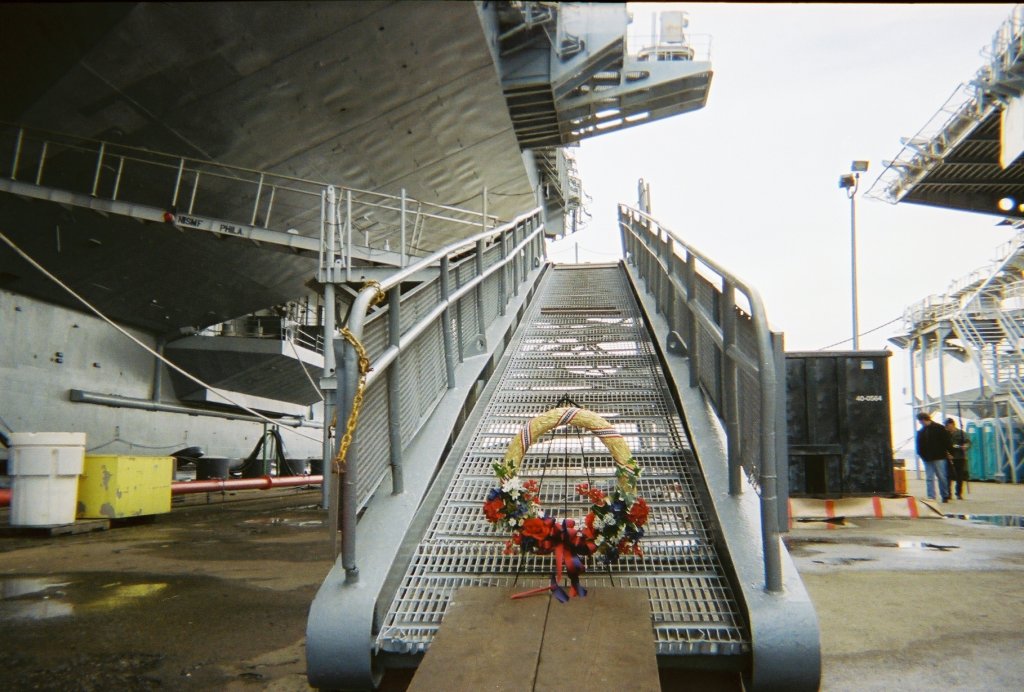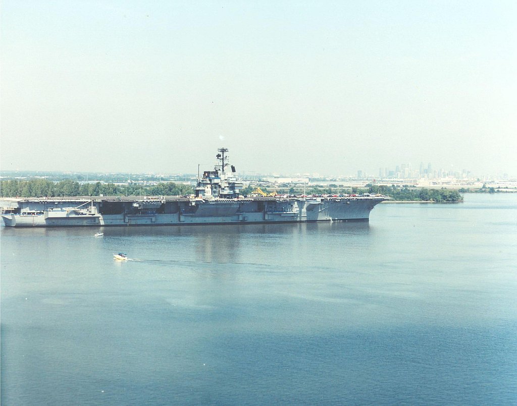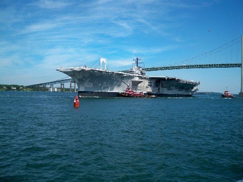 On 14 Sept 1998 ex-Forrestal was towed from the former Philadelphia Naval Shipyard, Philadelphia, PA, at 0400, by USNS Powhatan (T-ATF 166) enroute to Pier 1, Newport Naval Station, Middletown, Rhode Island. On 18 Sept 1998 ex-Forrestal arrived and was moored with her port side moored to the south side of Pier 1, Newport Naval Station, Middletown, Rhode Island. (Thanks to Ken Killmeyer, USS Forrestal Association Historian.)