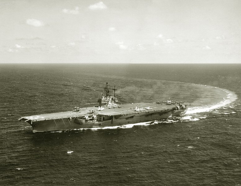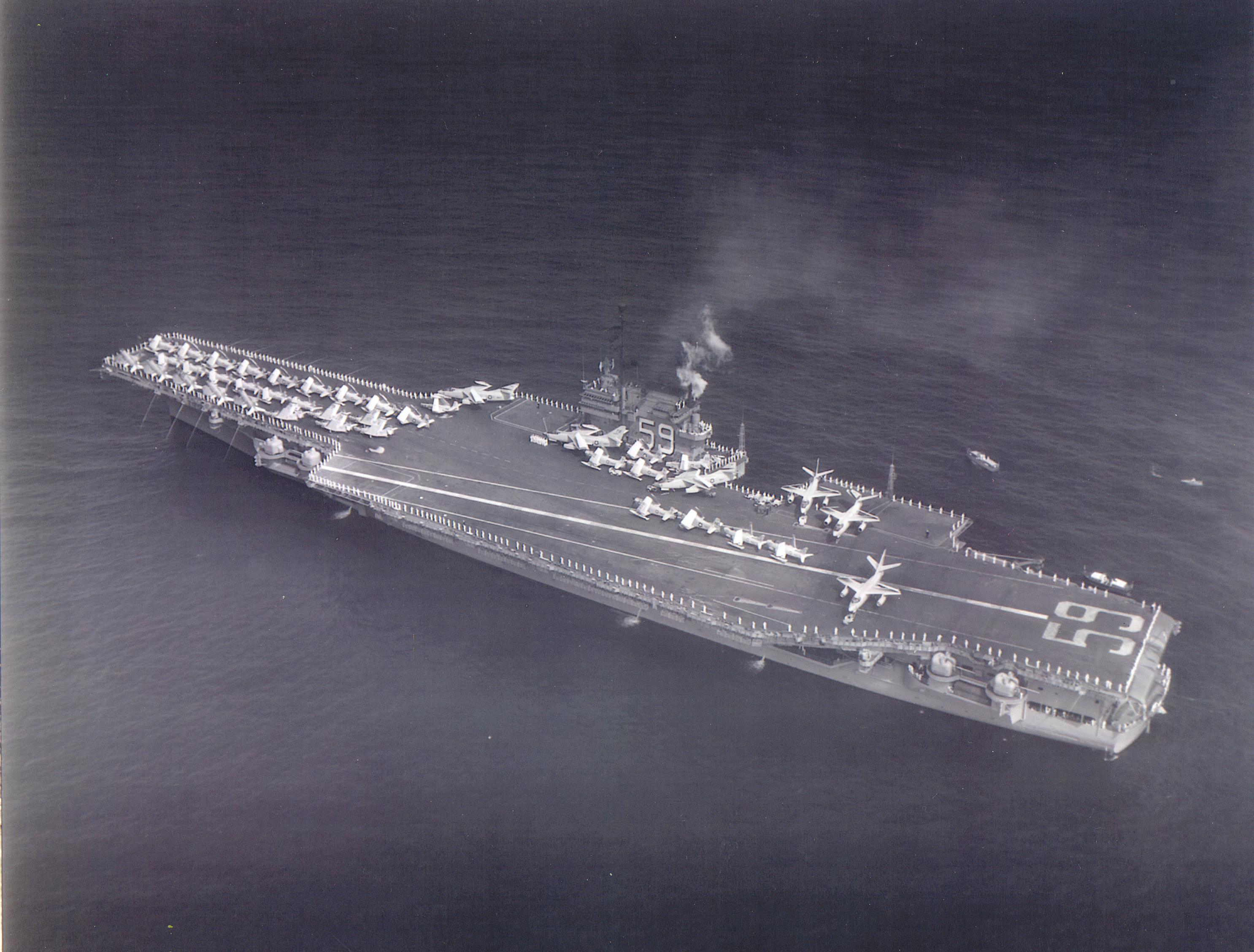 Ordered as a "Large Aircraft Carrier", hull number CVB-59. Contract awarded to the Newport News Shipbuilding and Drydock Co., Newport News, Va., 12 Jul 1951. Laid down 14 Jul 1952. Reclassified as an "Attack Aircraft Carrier" (CVA-59), 1 Oct 1952. Launched 11 Dec 1954 and commissioned 1 Oct 1955.