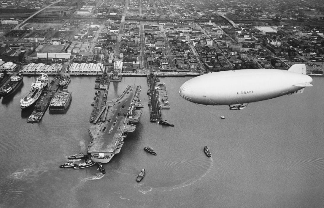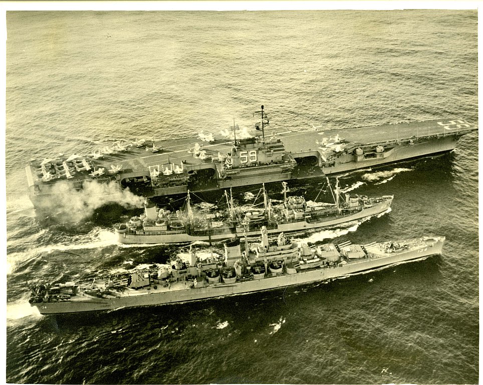 1.33M | "Official Navy Photo. Released by Dept. of Defense" USN Official Photo, # 484875, dated 15 Jul 1953. David comments: "[P]erhaps unknowingly, the people of Navy Public Affairs or whoever put this montage together, certainly did a great job of assembling a 'past, present and future' of carrier aviation, including the airship, first canted (angled) deck, first large carriers, first supercarrier, and a link to World War II in the form of the as-yet unmodified CVA 31." |