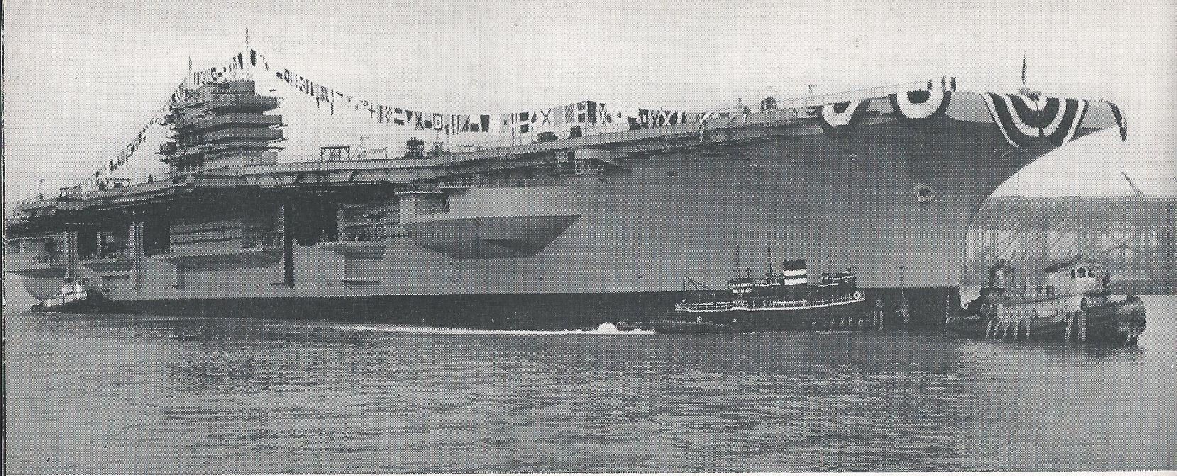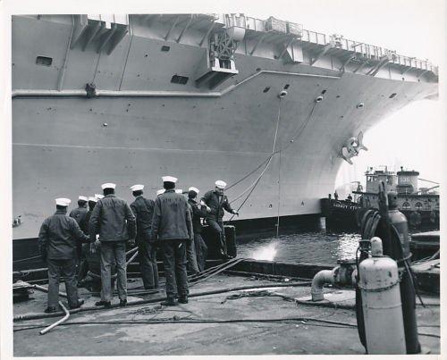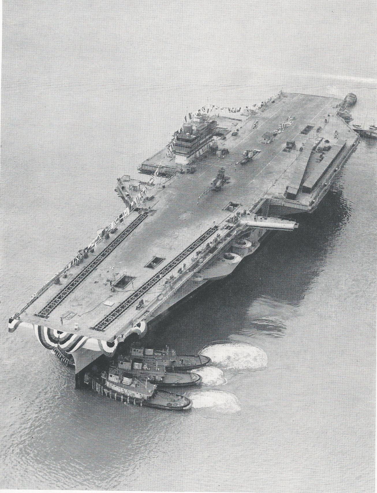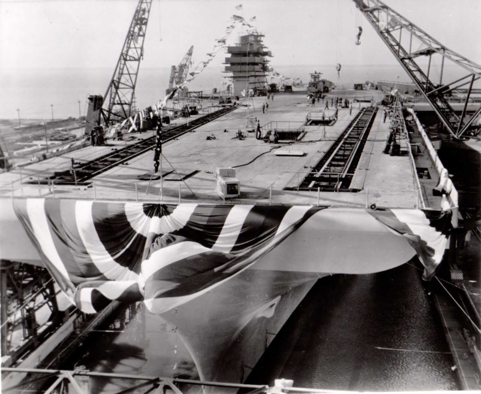 213k | This photo was probably taken late on 11 December 1954, after Forrestal was christened and launched, and when she was about to be moored to the outfitting pier. |