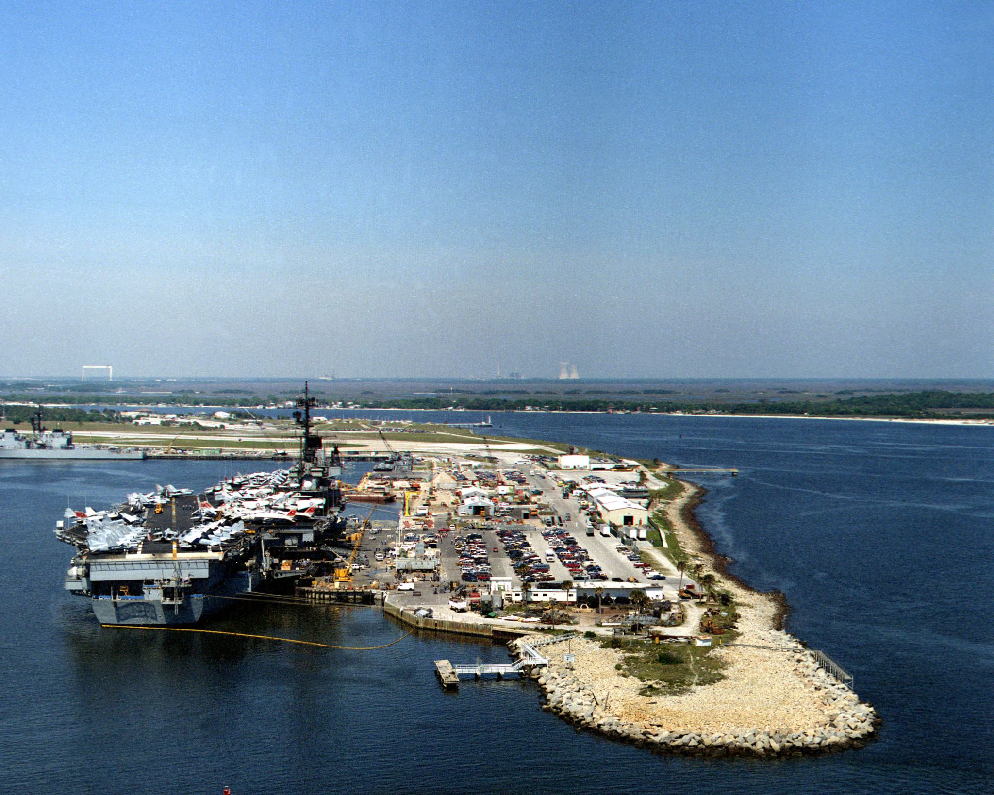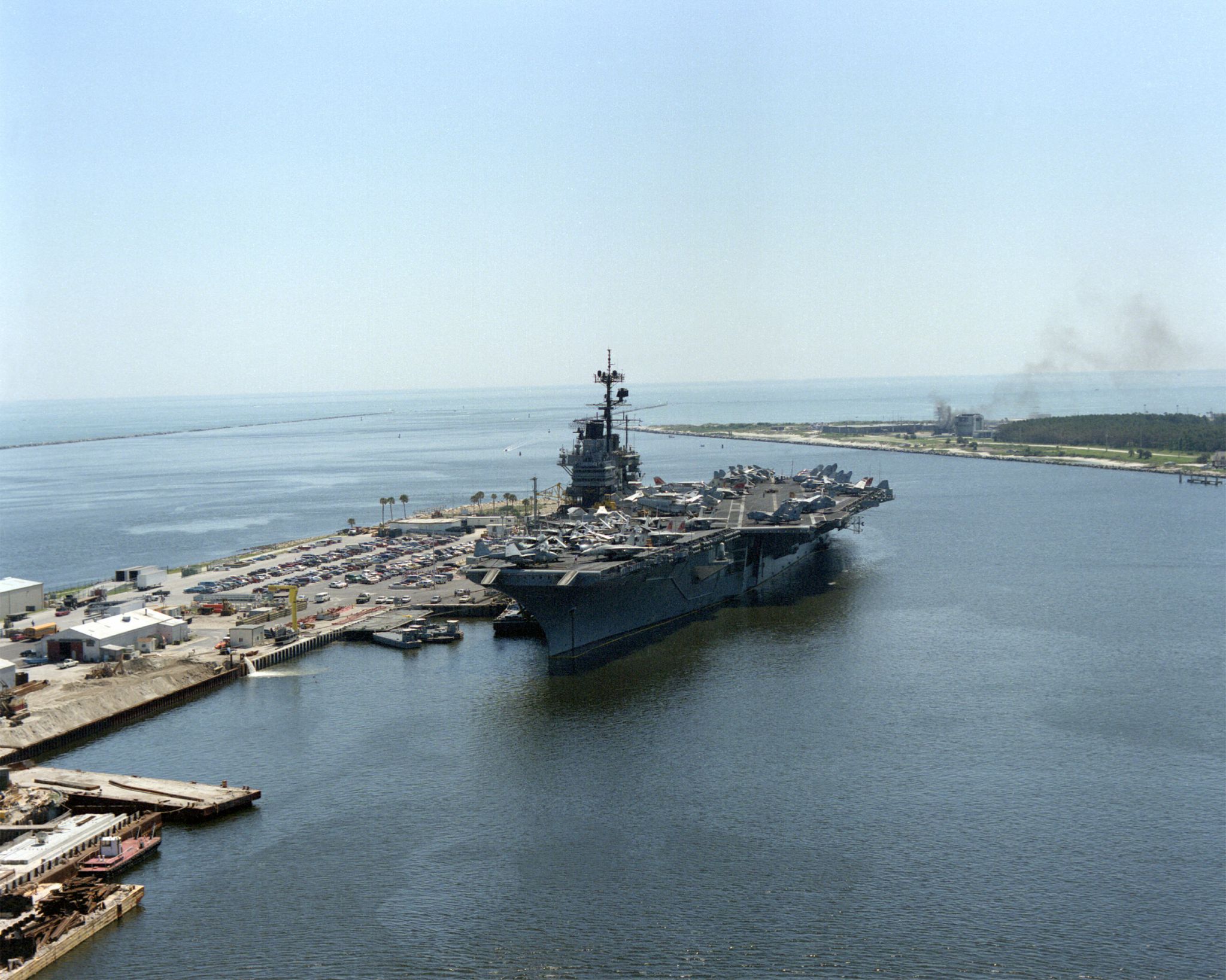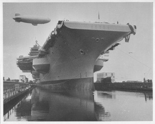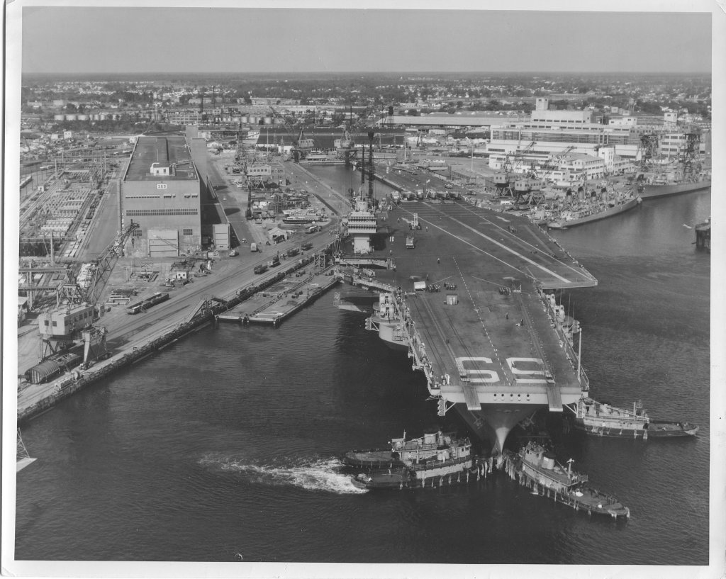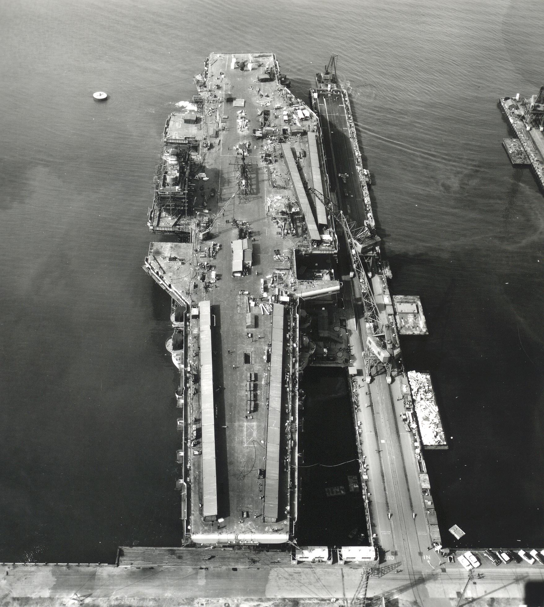 213k | This photo was probably taken late on 11 December 1954, after Forrestal was christened and launched, and when she was about to be moored to the outfitting pier. |