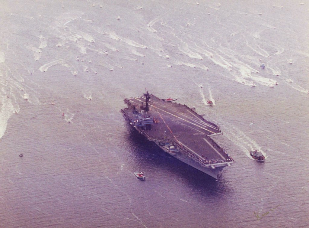 Reclassified as a "Multi-purpose Aircraft Carrier" (CV-59), 30 June 1975. Modernized at the Philadelphia Naval Shipyard Jan 1983-May 1985 under SLEP (Service Life Extension Program).
