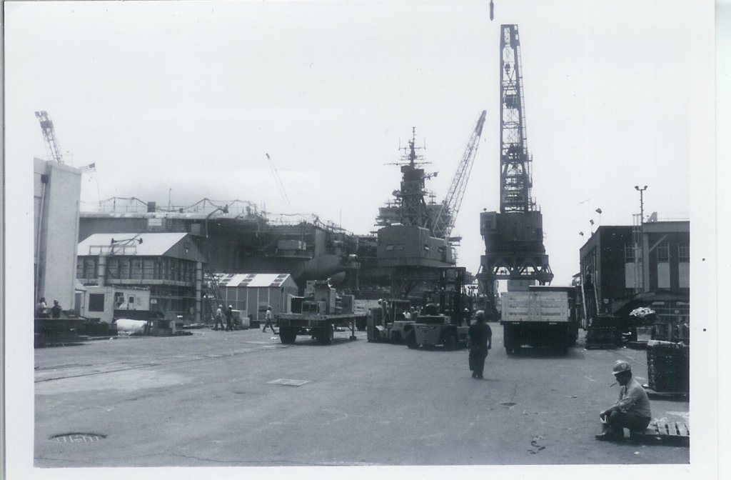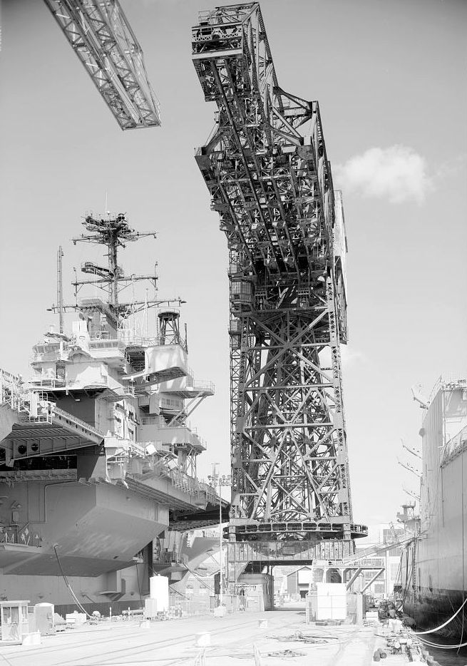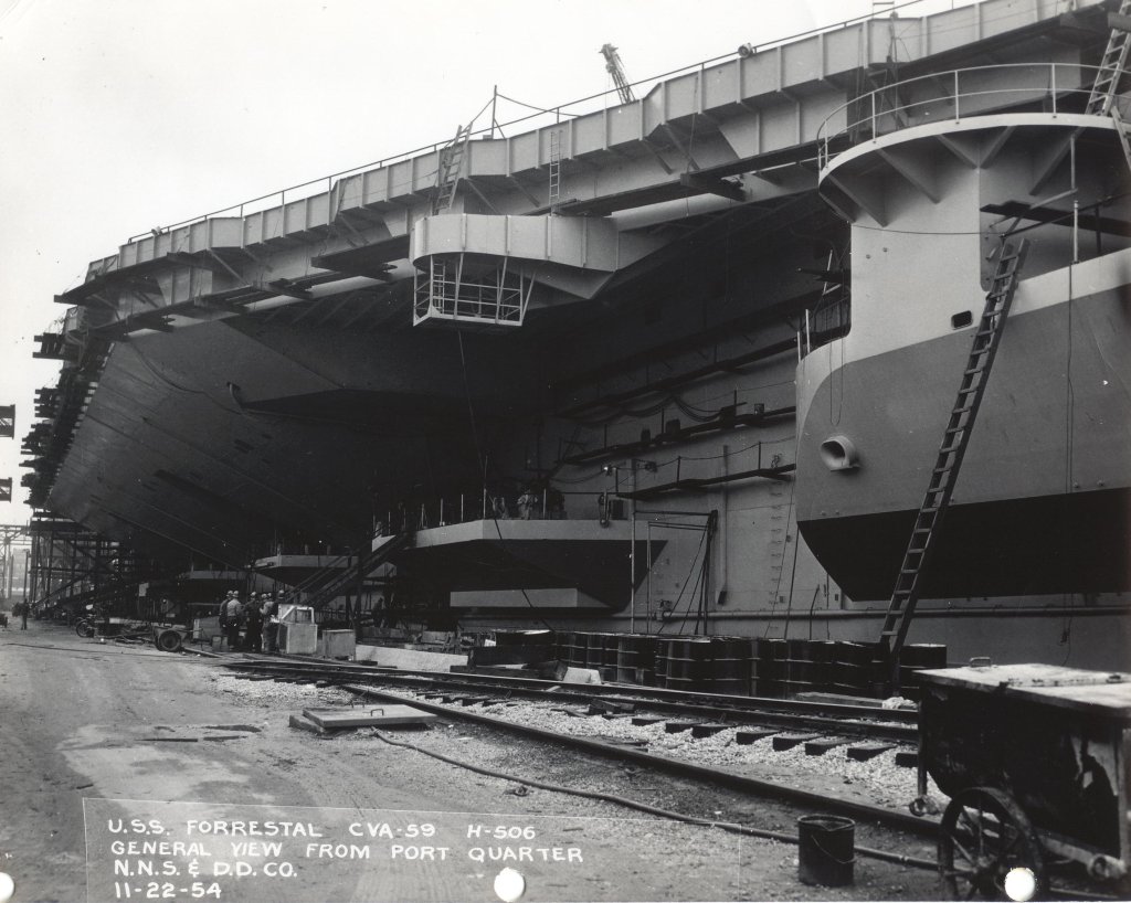 143k | Forrestal (CVA-59) under construction. General view from port quarter, 22 November 1954. Newport News Shipbuilding & Dry Dock Co. photo. Compare to photo NS0259br, taken almost exactly 53 years later. |