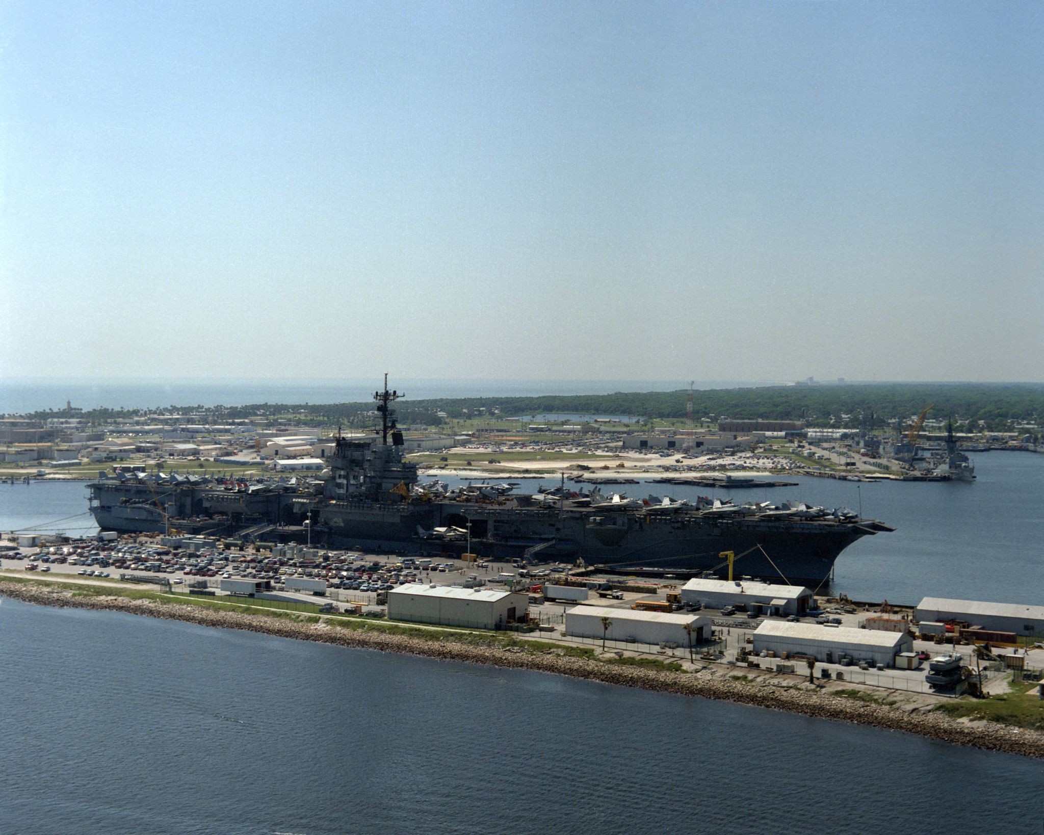 53k | Ex-USS Forrestal (AVT-59), left, and ex-USS John F. Kennedy (CV-67), Naval Support Activity Philadelphia, December 2010. |