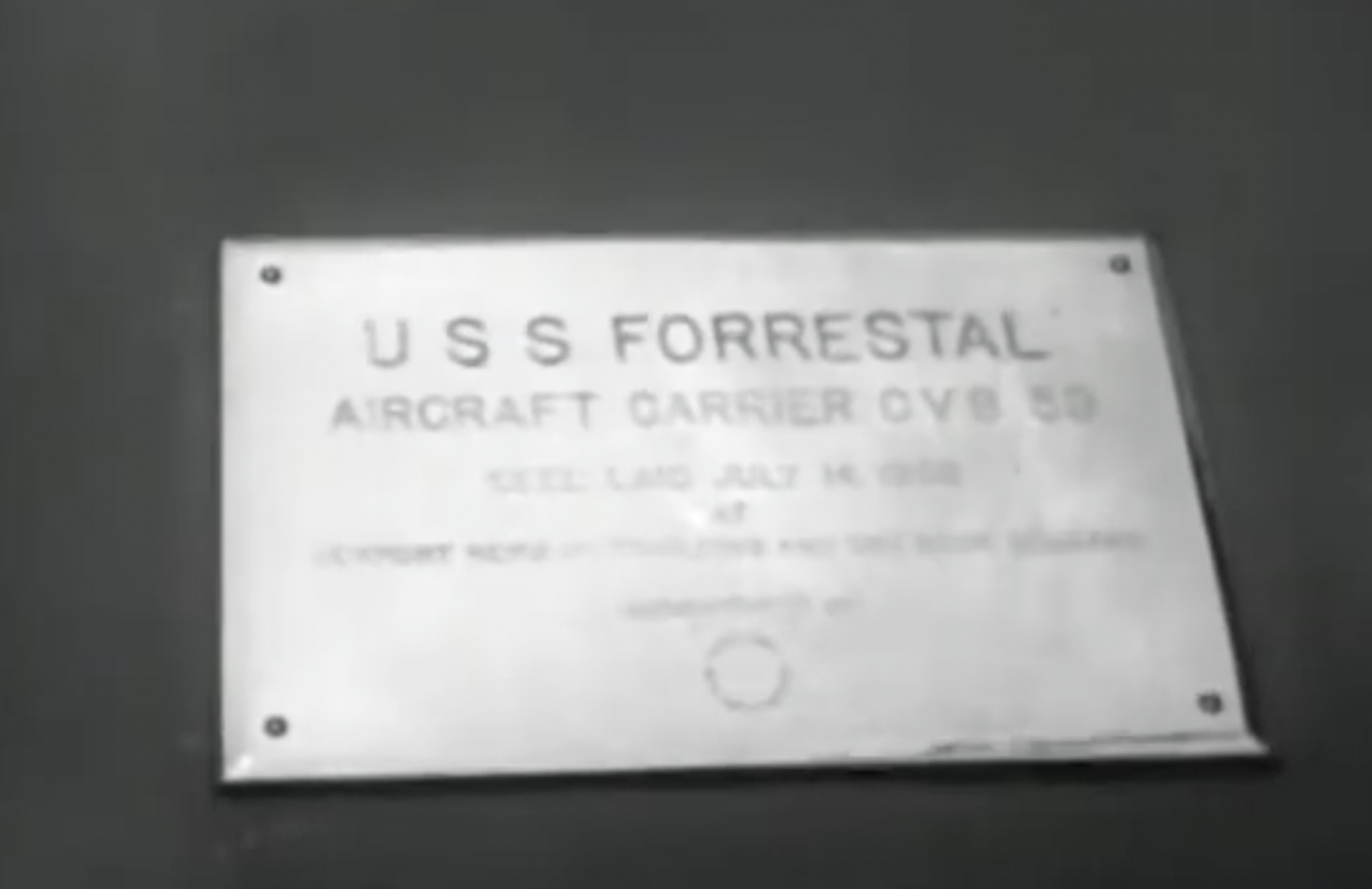 176k | Bronze plaque fixed to the keel plate on the keel laying ceremony. It reads: USS Forrestal CVB-59 |