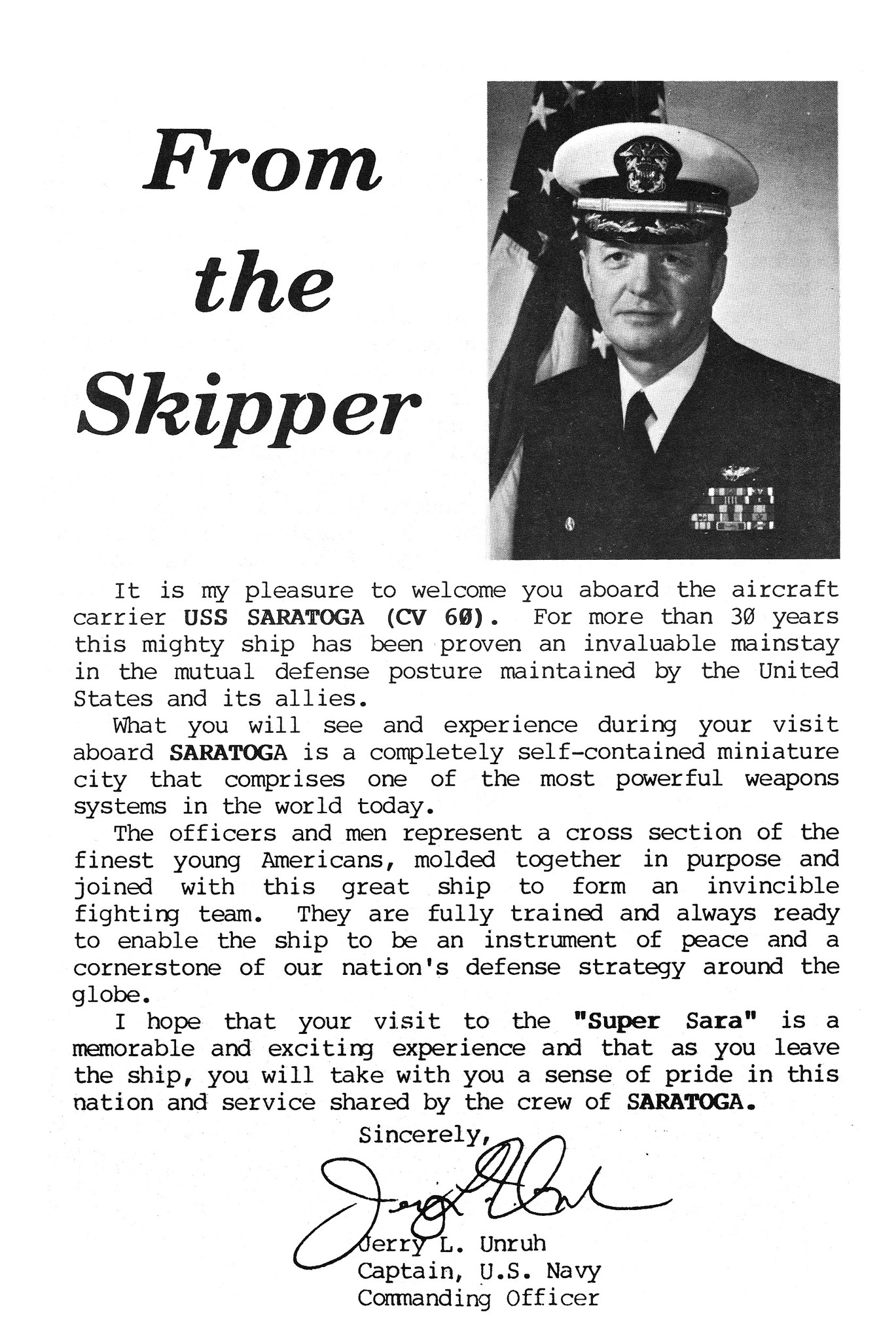 Source: USS Saratoga (CV-60) Decommissioning Program, contributed by Robert M. Cieri;