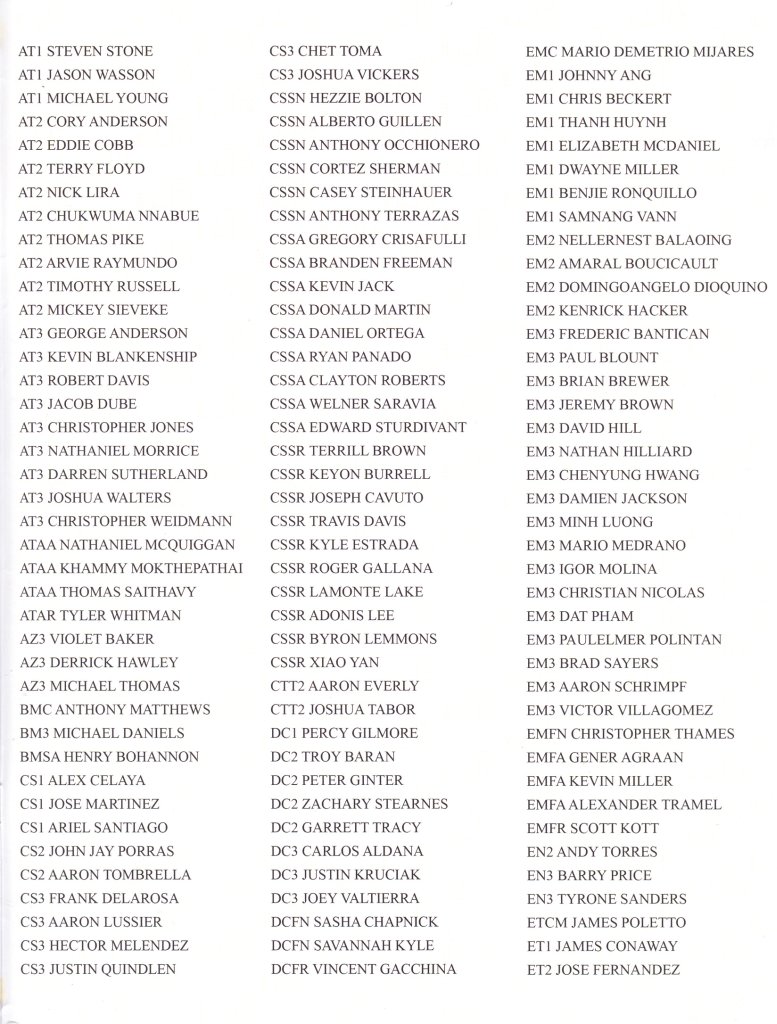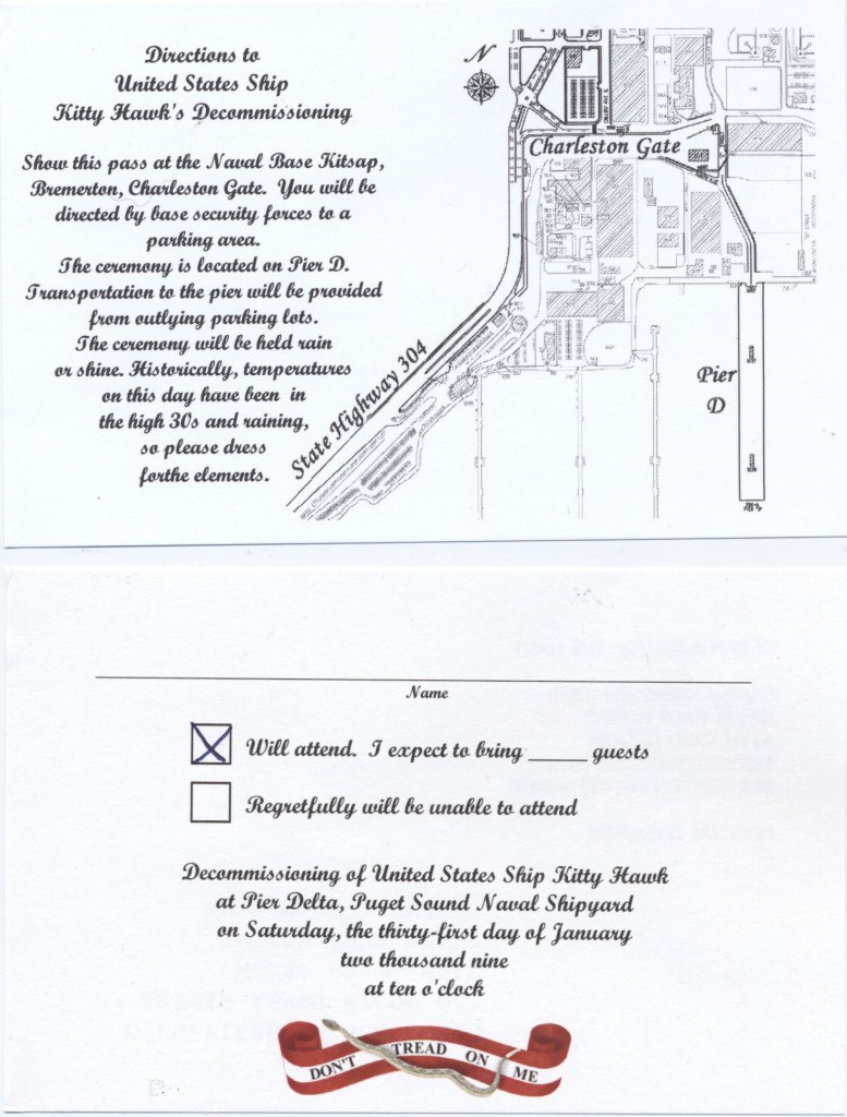 "More than 2,000 people, and millions of memories, filled USS Kitty Hawk's hangar bay Jan. 31, as past and present crewmembers, families and friends gathered for a ceremony to honor the legacy of the Navy's oldest active warship [at the time]." (Text courtesy of USS Kitty Hawk Public Affairs.)