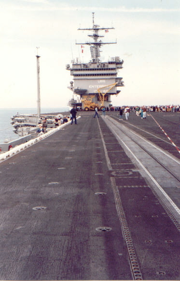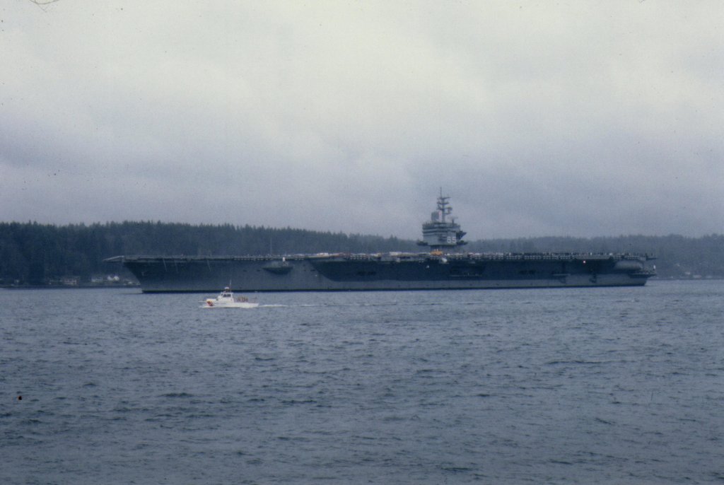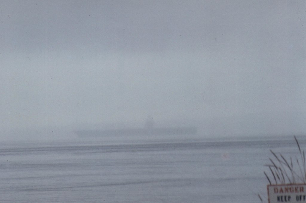 78k | "These photos are all of the Big E loaded up with cars for the transit back to Alameda from PSNSY Feb 11, 1982." "The one shrouded in fog was taken near the entrance to the Strait of Juan de Fuca at Worden State Park." "All photos taken by Kent Smith (ET2), Dallas TX. Crewman at the time." |