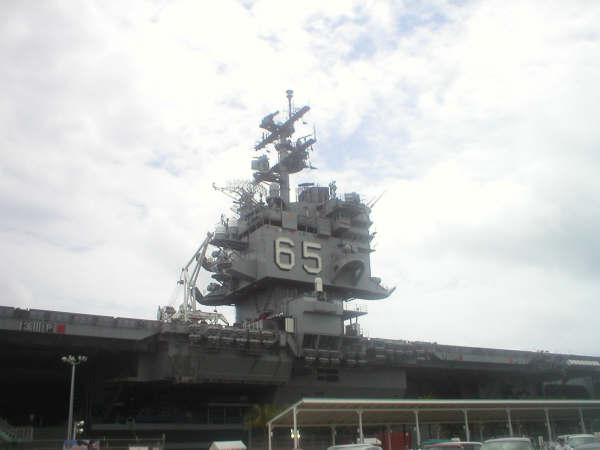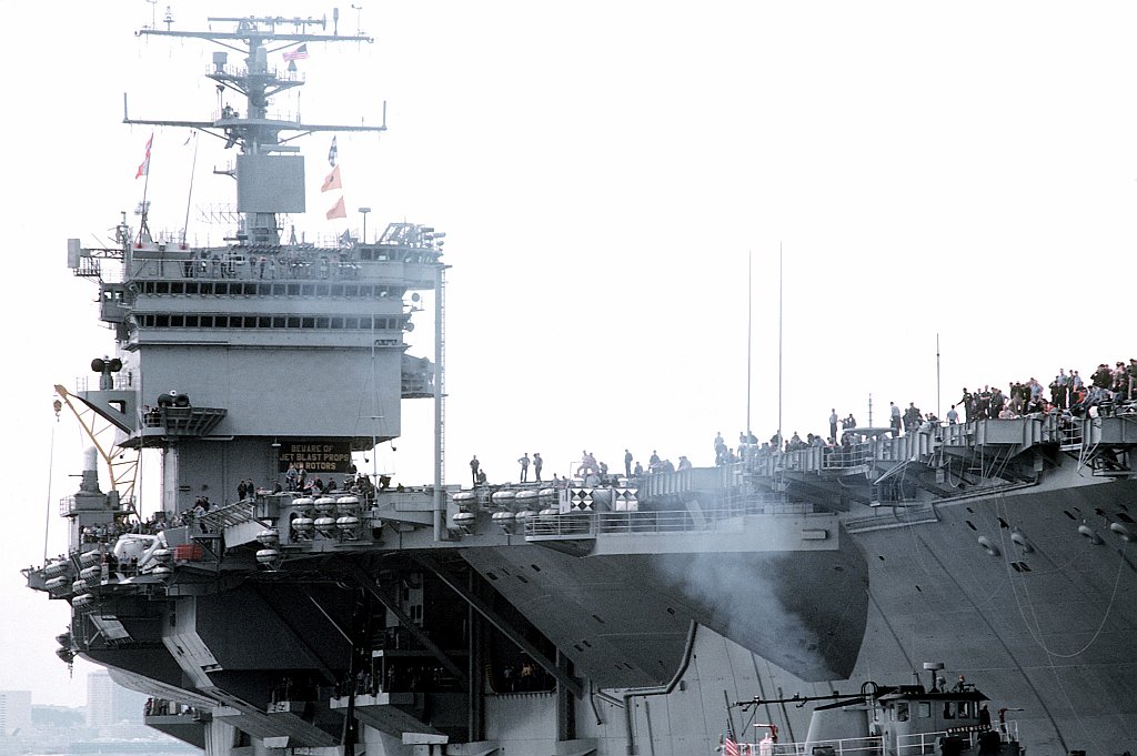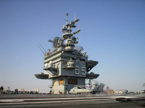 118k | USS Enterprise (CVN-65), view of island after the 1979–1982 modernization (little detail). Date and location unknown. |