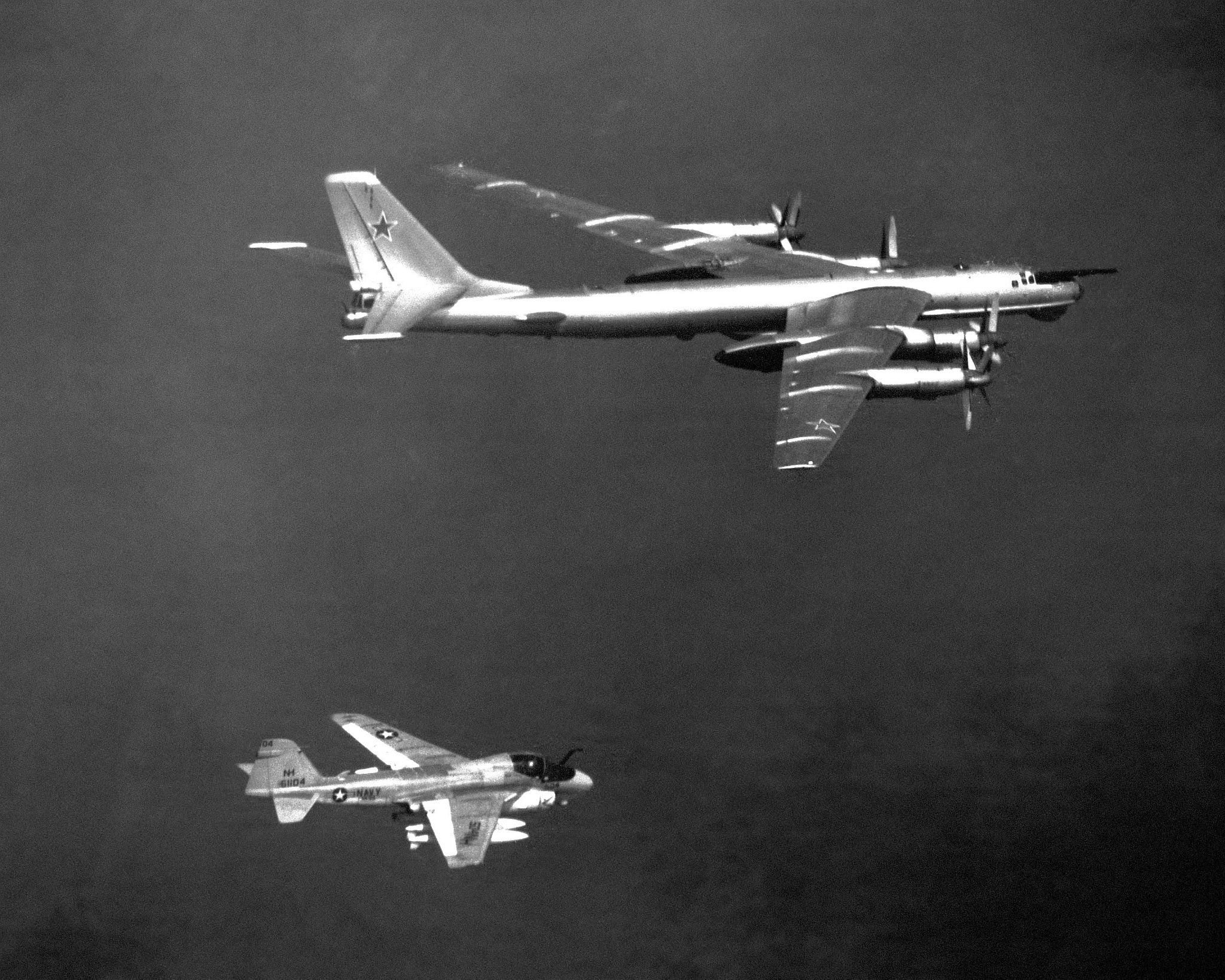 540k | A Bear trying to get a closer look, possibly in the Sea of Japan, October 1982. From USS Enterprise (CVN-65) Cruise Book, 1982–1983. |