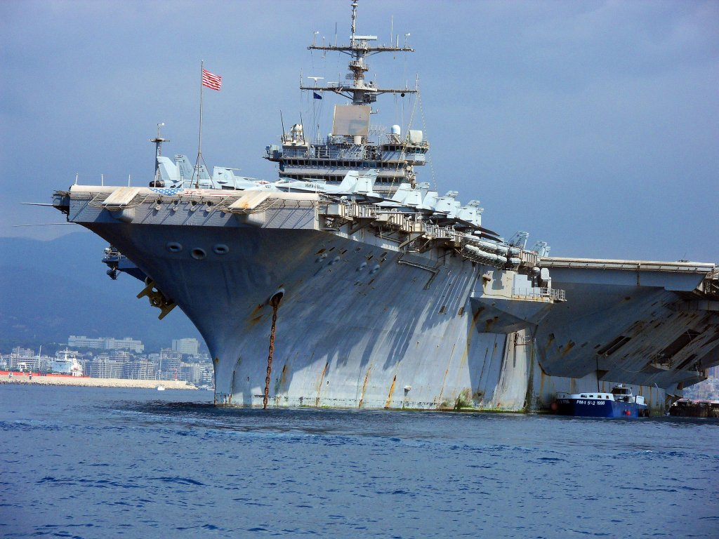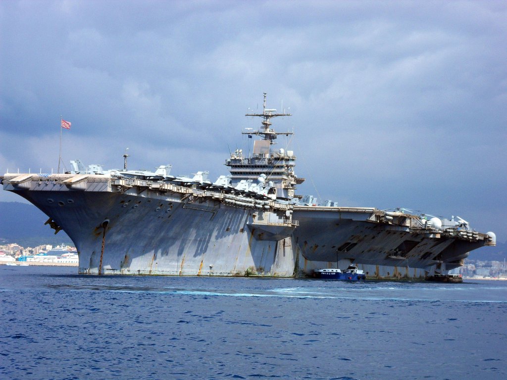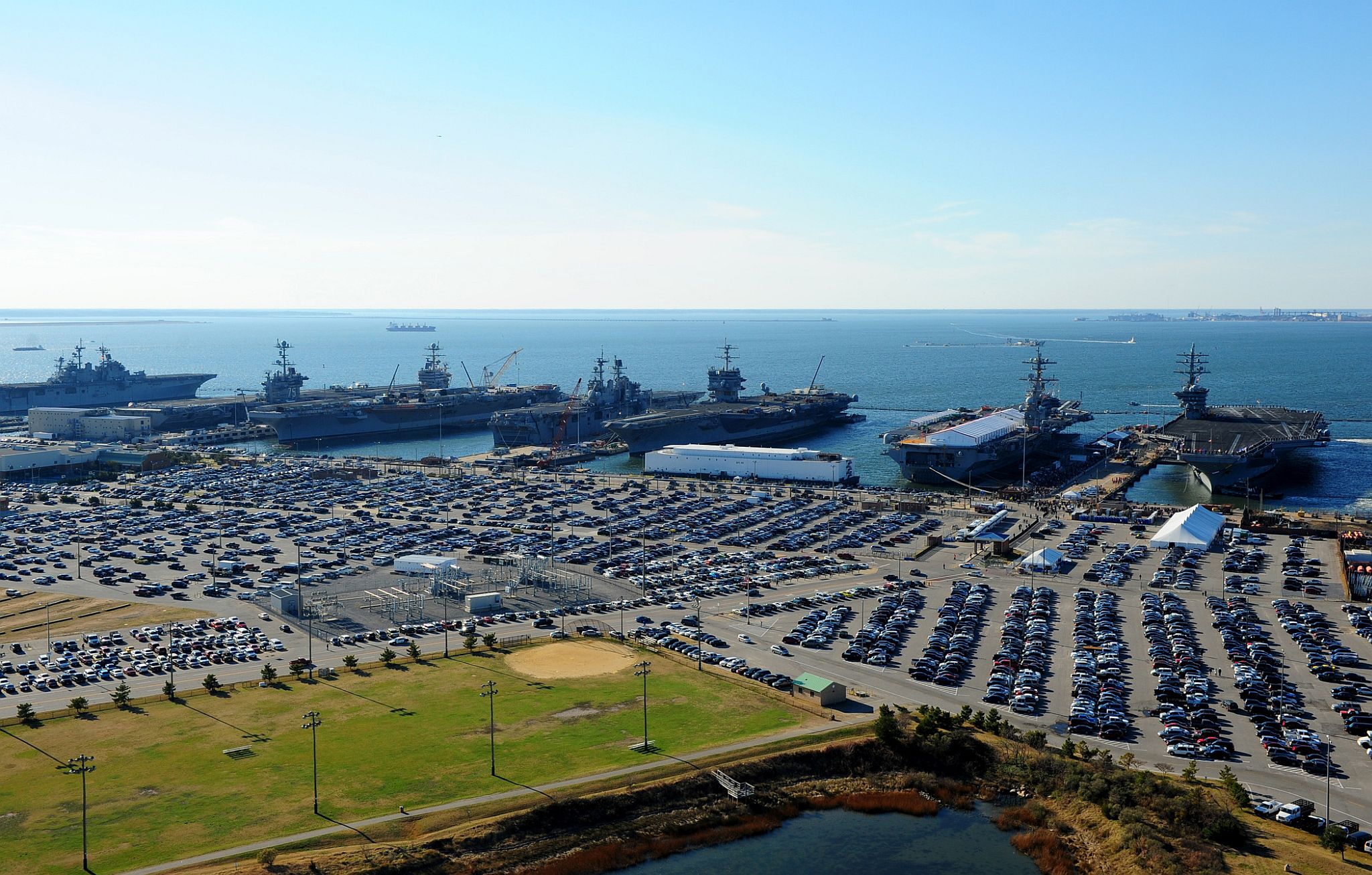 537k | Naval Station Norfolk, 19 December 2012. Ships are, right to left: USS Dwight D. Eisenhower (CVN-69), USS George H.W. Bush (CVN-77), ex-USS Enterprise (CVN-65), USS Bataan (LHD-5), USS Abraham Lincoln (CVN-72), USS Harry S. Truman (CVN-75), and USS Wasp (LHD-1). U.S. Navy photo by Mass Communication Specialist 3rd Class Kevin J. Steinberg, # 121219-N-TB177-875. |