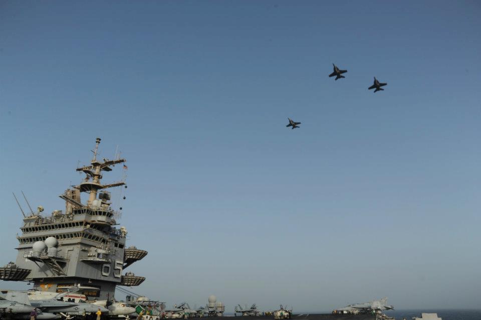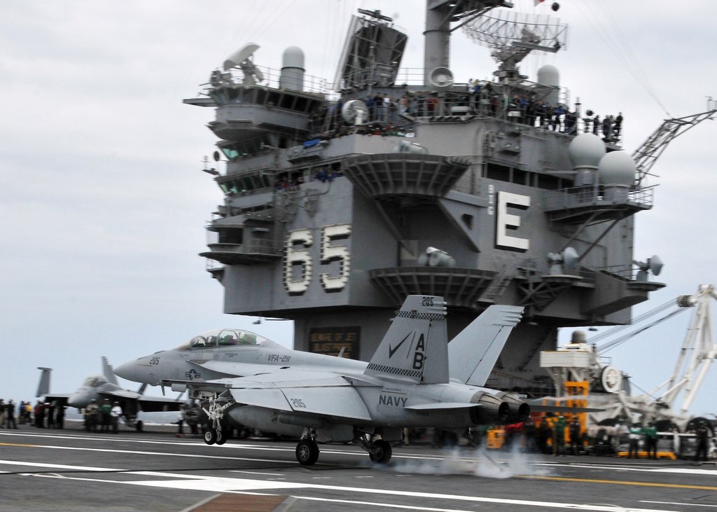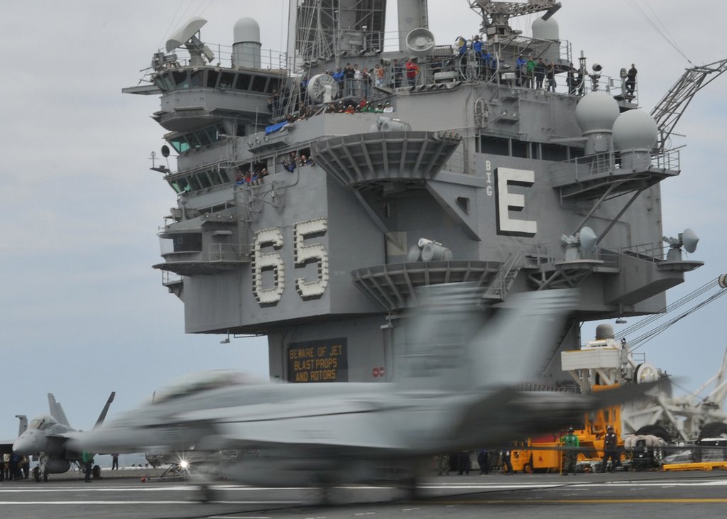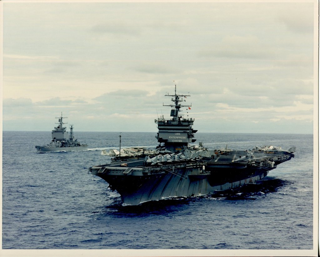 462k | USS Enterprise (CVN-65) underway with Carrier Air Wing (CVW) 11, sometime in 1982–1985. |