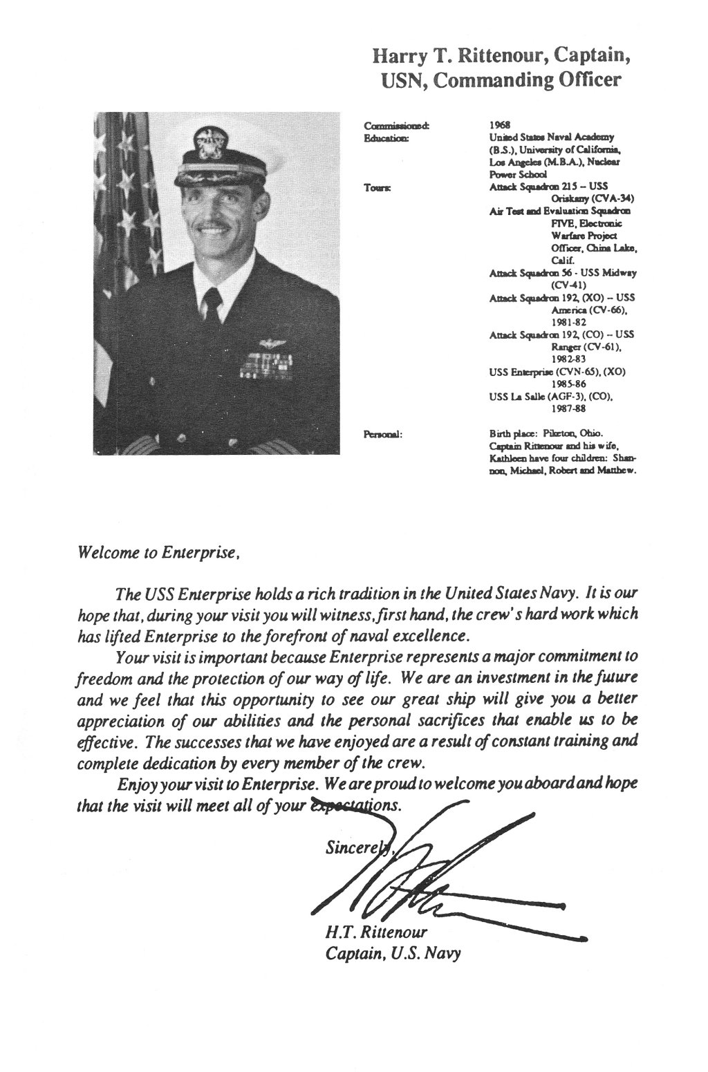 | Captain Harry Taylor Rittenour [Biography] | USNA 1968 | 28 Oct 1988 - 7 Aug 1991 | RADM |