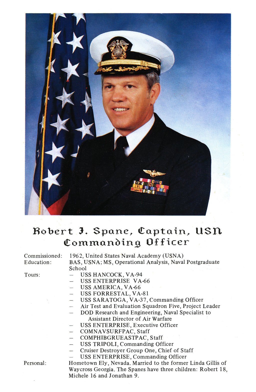 | Captain Robert Johnson Spane [Biography] | USNA 1962 | 27 Jan 1986 - 28 Oct 1988 | VADM |