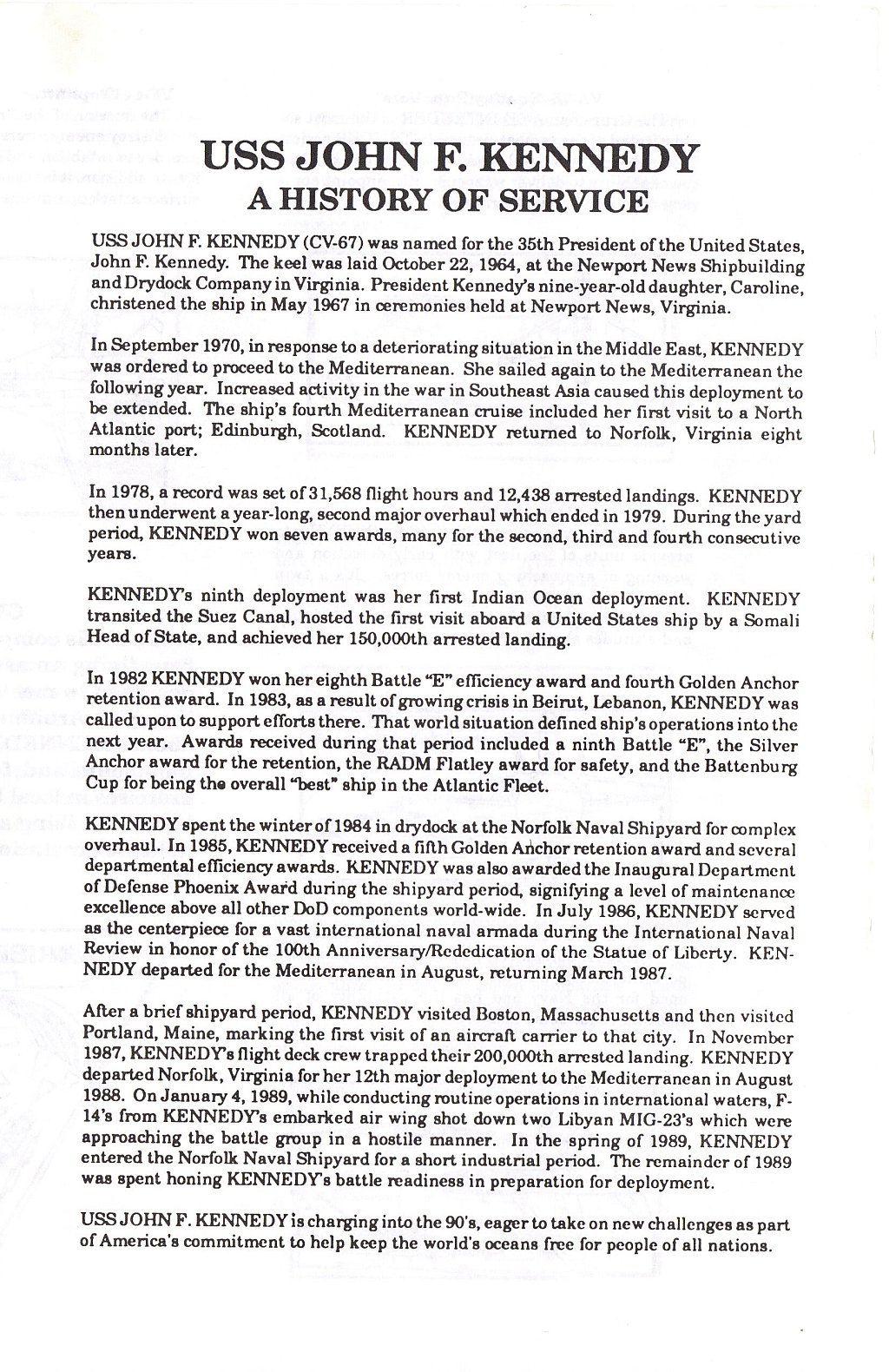 USS John F. Kennedy (CVA-67 / CV-67) Main Page |