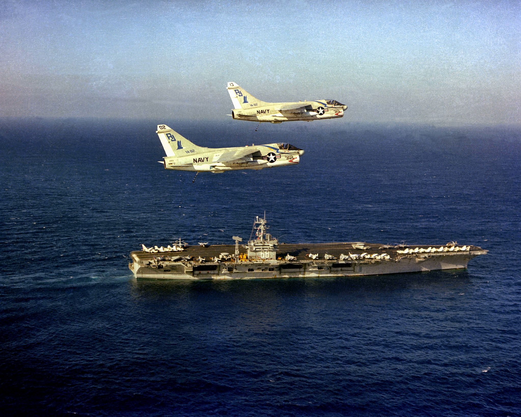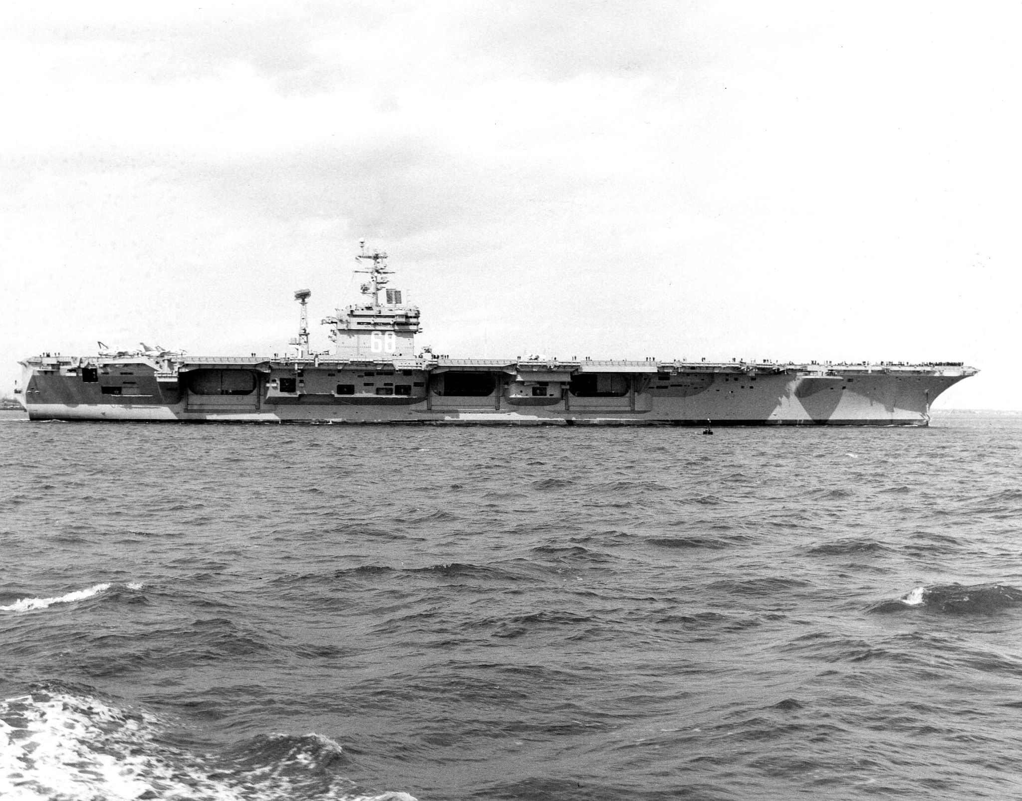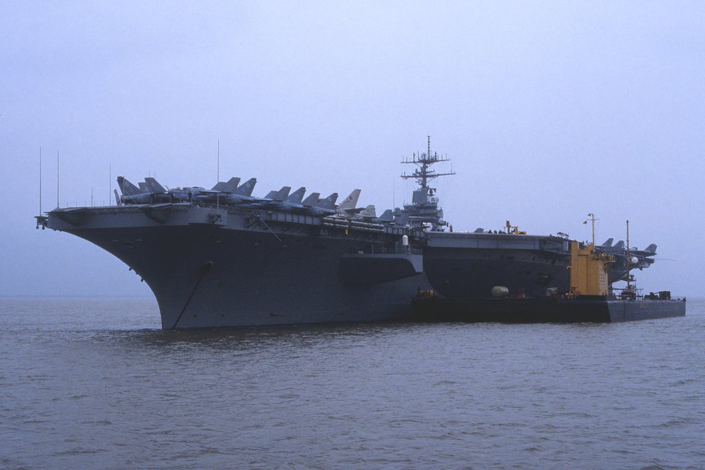 125k | Good overhead image, showing the overall details of the Nimitz-class. Picture taken sometime in 1975-1977, with Carrier Air Wing Eight (CVW-8) aboard. | USN | |||||