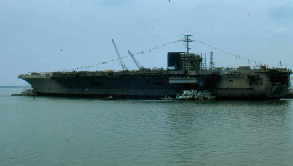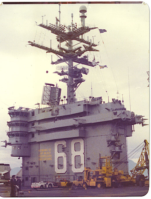 65k | Nimitz at the Newport News outfitting pier, probably in 1974. |