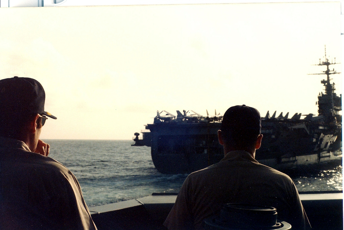 96k | This image is from WestPac 93 (2 February–1 August 1993) when USS Nimitz (CVN-68) sailed to the Persian Gulf for Operation Southern Watch, enforcing the no-fly zone over southern Iraq. |