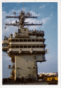 45k | USS Nimitz and her embarked Carrier Air Wing Eight (CVW-8; tail code "AJ") played a key role in "The Final Countdown," a 1980 science-fiction movie (starring Kirk Douglas, Martin Sheen, James Farentino and Katharine Ross; directed by Don Taylor). Although the action supposedly takes place in the Pacific, near Pearl Harbor, Nimitz was actually assigned to the Atlantic Fleet at the time. The carrier seen passing the Arizona Memorial in the closing scenes is, in fact, USS Kitty Hawk (CV-63). |